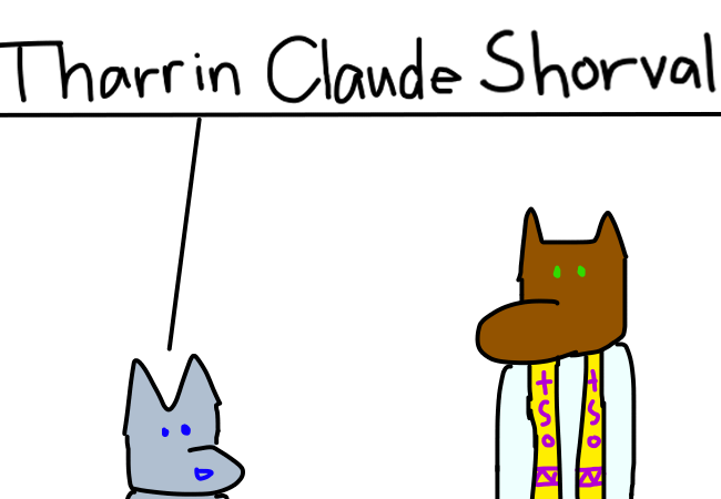 "I think my name is Tharrin Claude Sharvol," you answer the priest. "What are these 'strange characteristics' that you speak of, sir?"