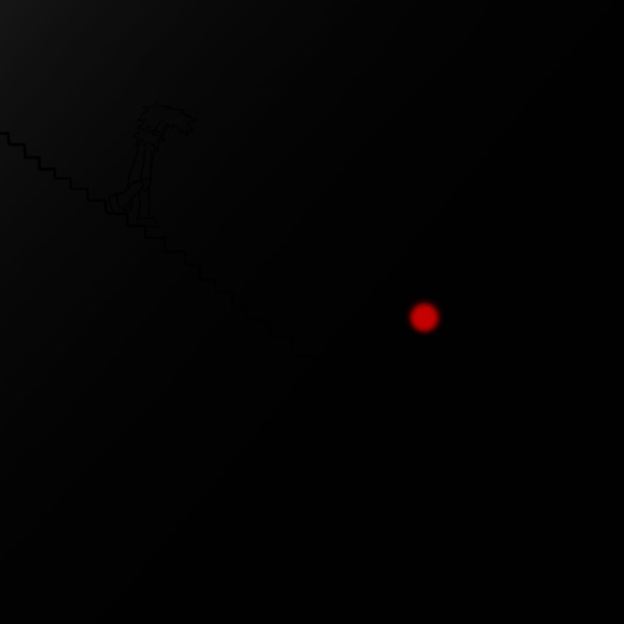>gaze down dark staircase.