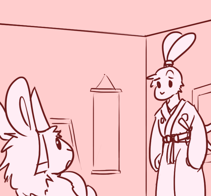 >"It's fine, shibibi. Bunny buddy, our job on easter is to paint these eggs nice colors and then hide them for kids to find."