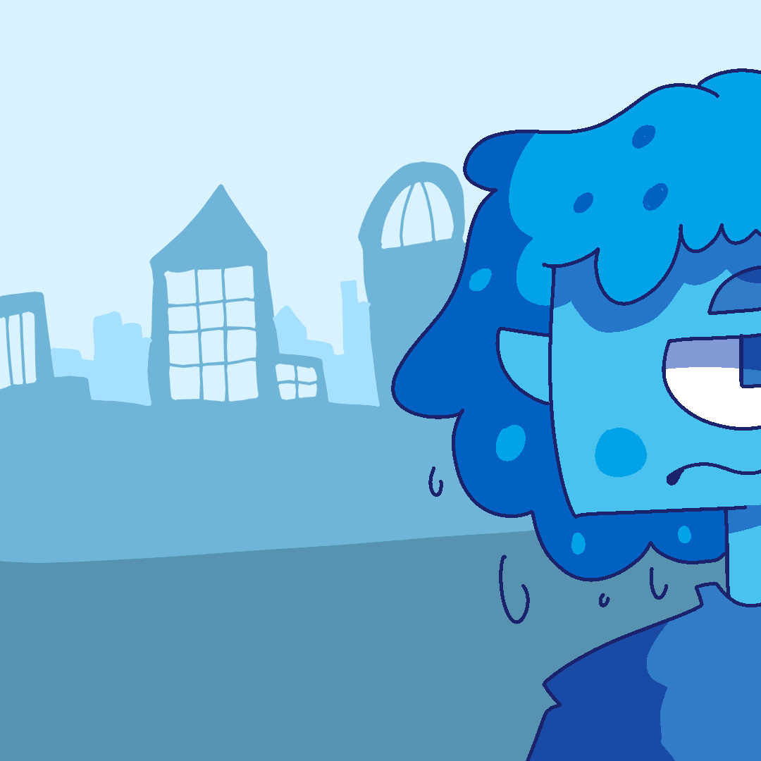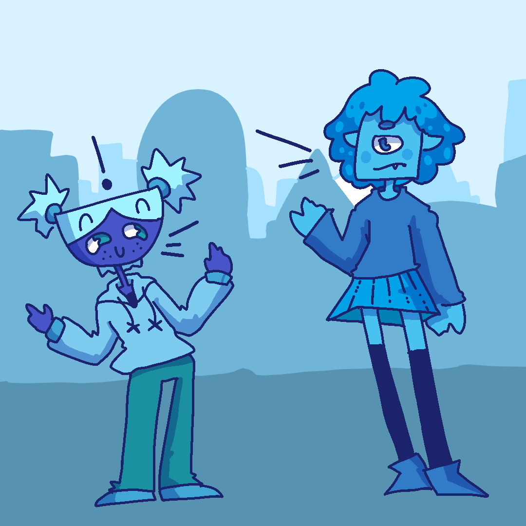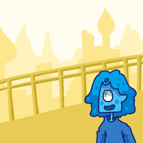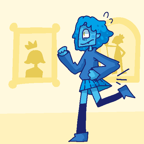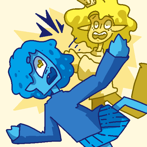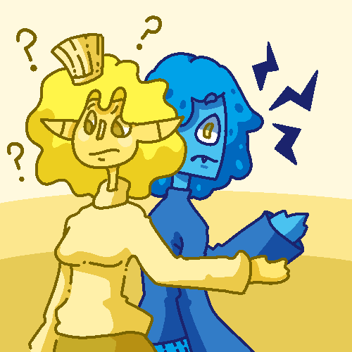 The yellow girl looks around as if she's hearing things, extending out an arm with a look of annoyed concern on her face.