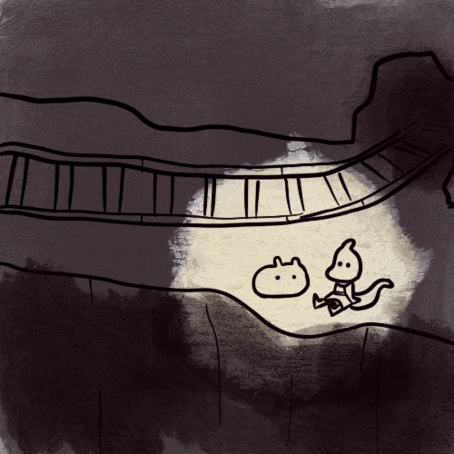 You and Humphrey stand at the mouth of an enormous cave. Humphrey leads the way, his body producing a soft yellow-green glow for you to see by. It doesn’t spread very far, but as slimes you’re able to see much better in low light than most. All the same, it’s very slow going.