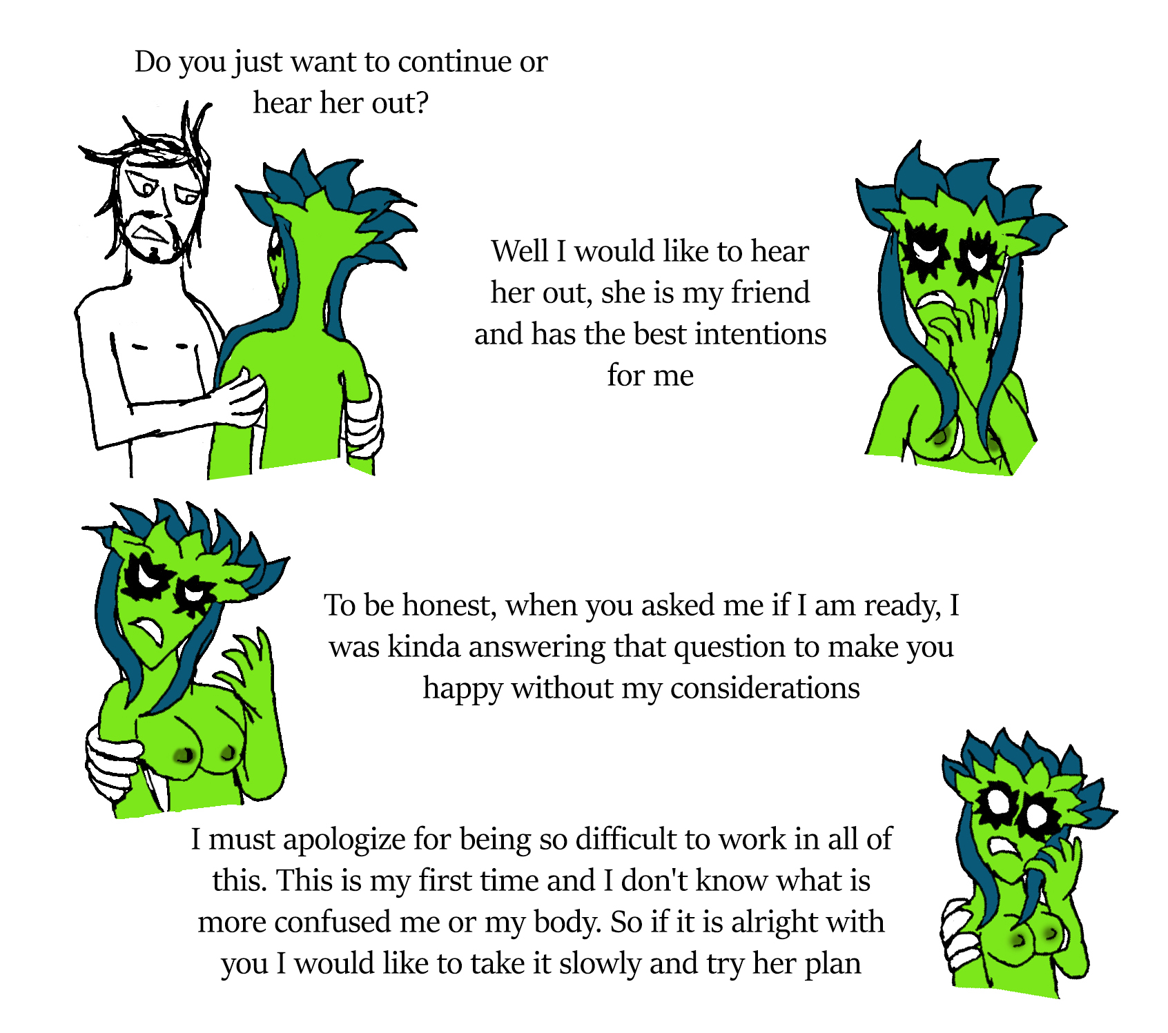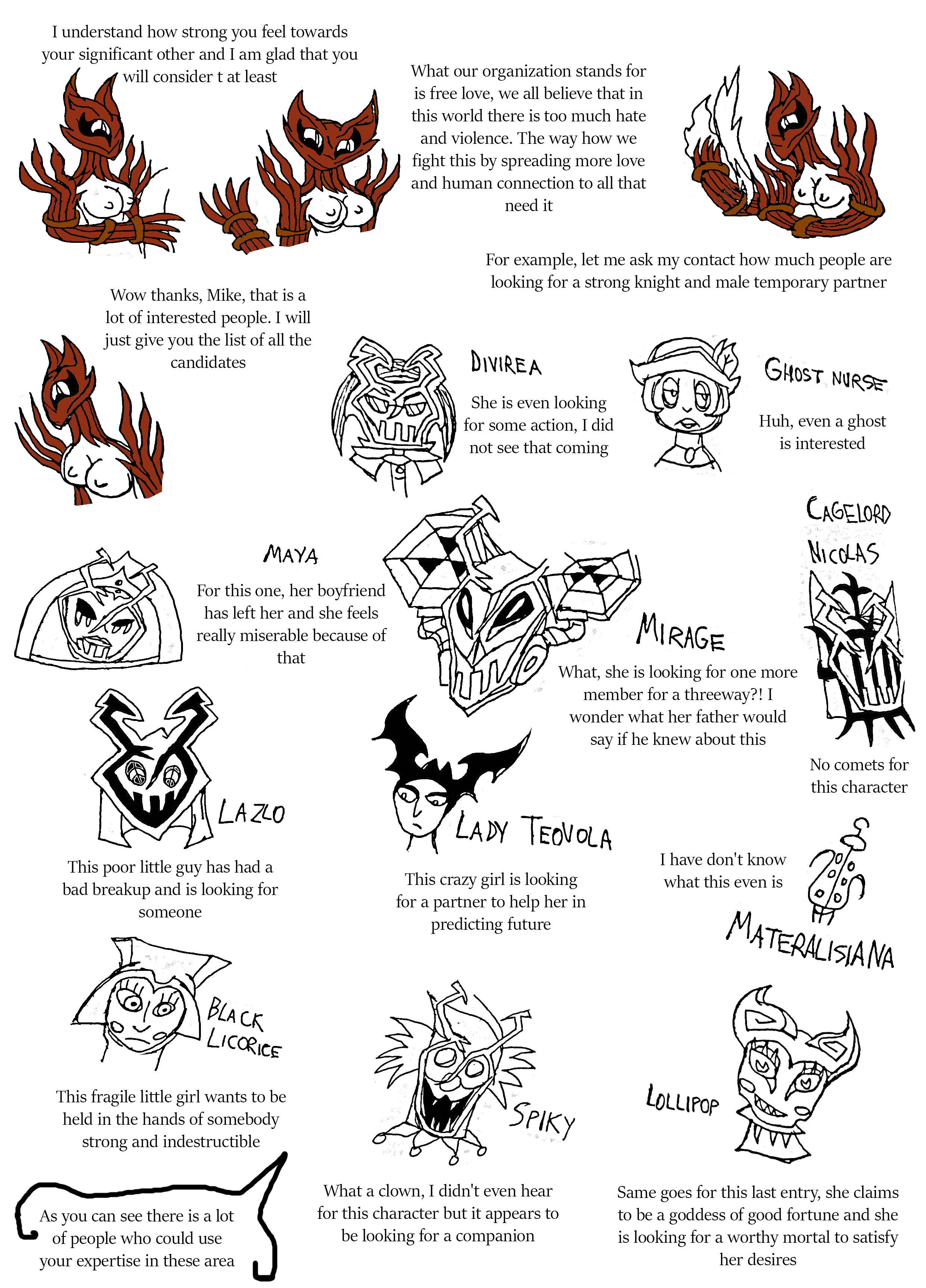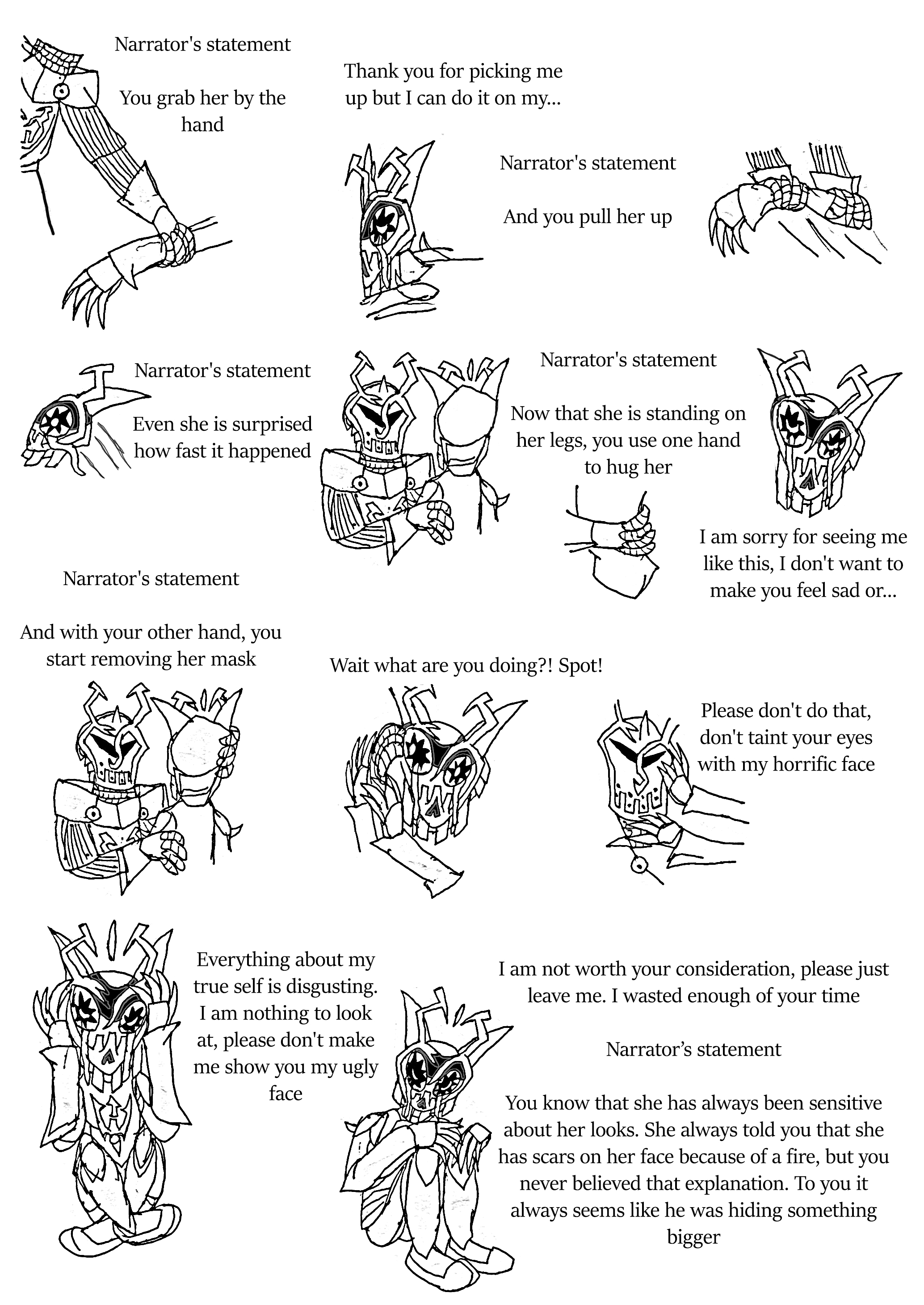 As for your proposal... It’s a tentative yes, but I can’t let go of vows to the Cross Ash. But I’d like to return to my purposal however, I’m gonna let you in on a little secret, I think Godfrey actually finds your leader to be... very attractive. I’ve seen the way they talk to each other and through the bickering and arguing, you could almost cut the sexual tension with a knife. I think he’s been acting the way he has because he needs to keep up appearances. But I once saw him composing a letter to her asking if she felt the same way then destroying it. Just give it time for now. After this trial... IF we make it through this trial I’m sure we can find some common ground. Godfrey likes helping for the good of the people, your Leader does too, I’m sure we could set some Knights up with dates.