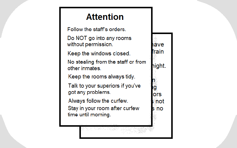 Safe Halls - A few long halls which the inmates can freely walk in and hang out, none of them lead to any important rooms. September’s room is located in one of those safe halls.