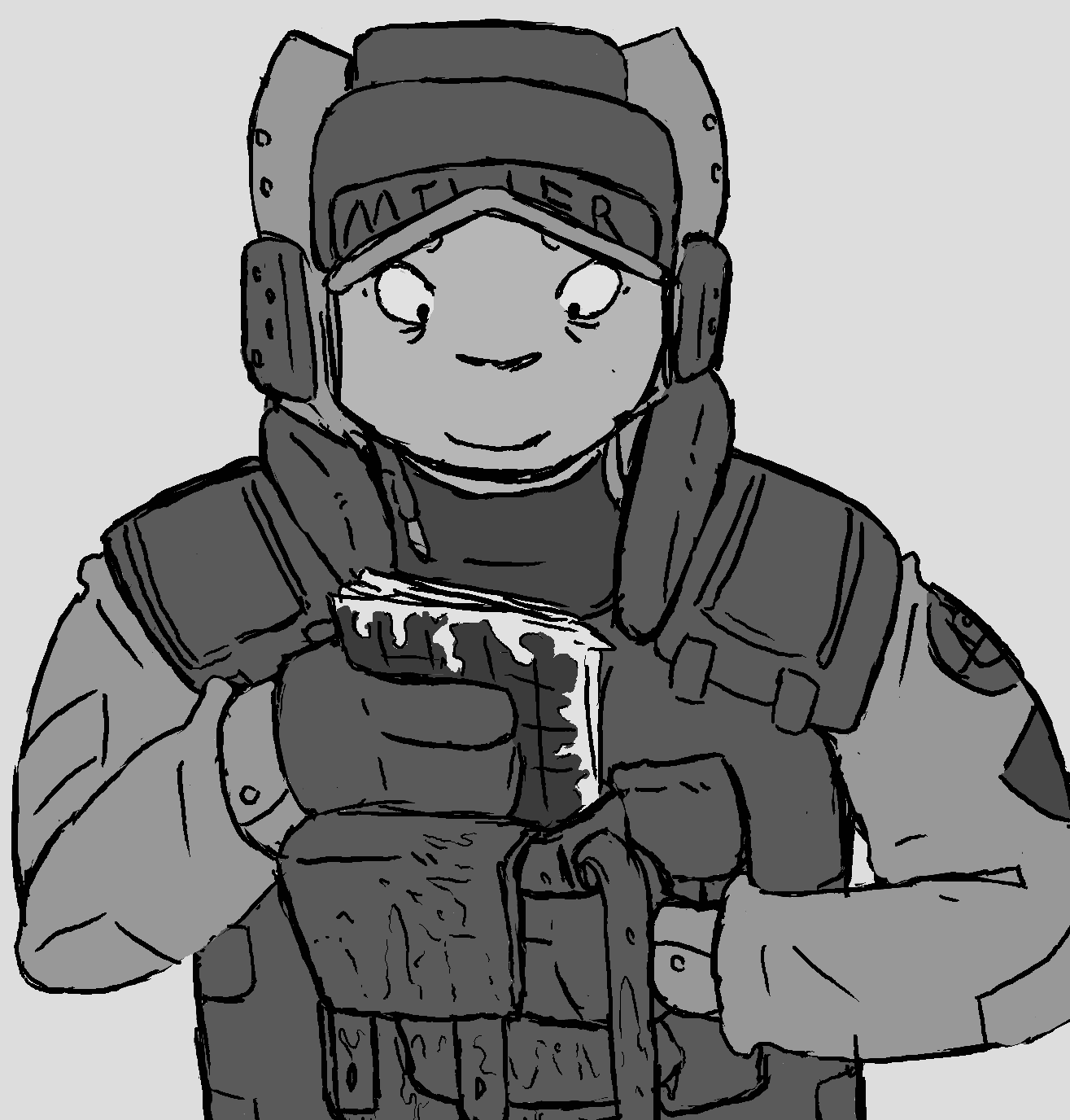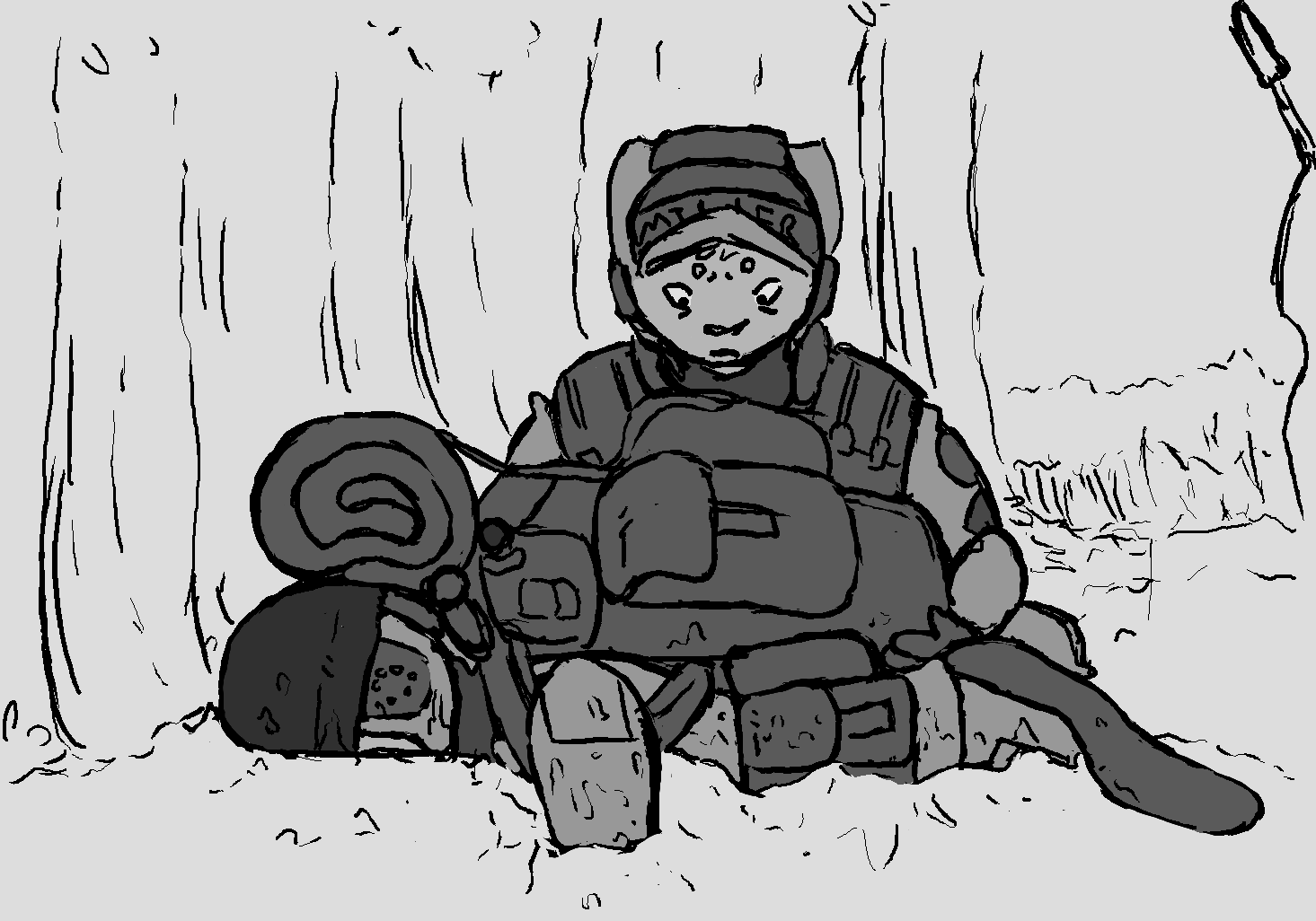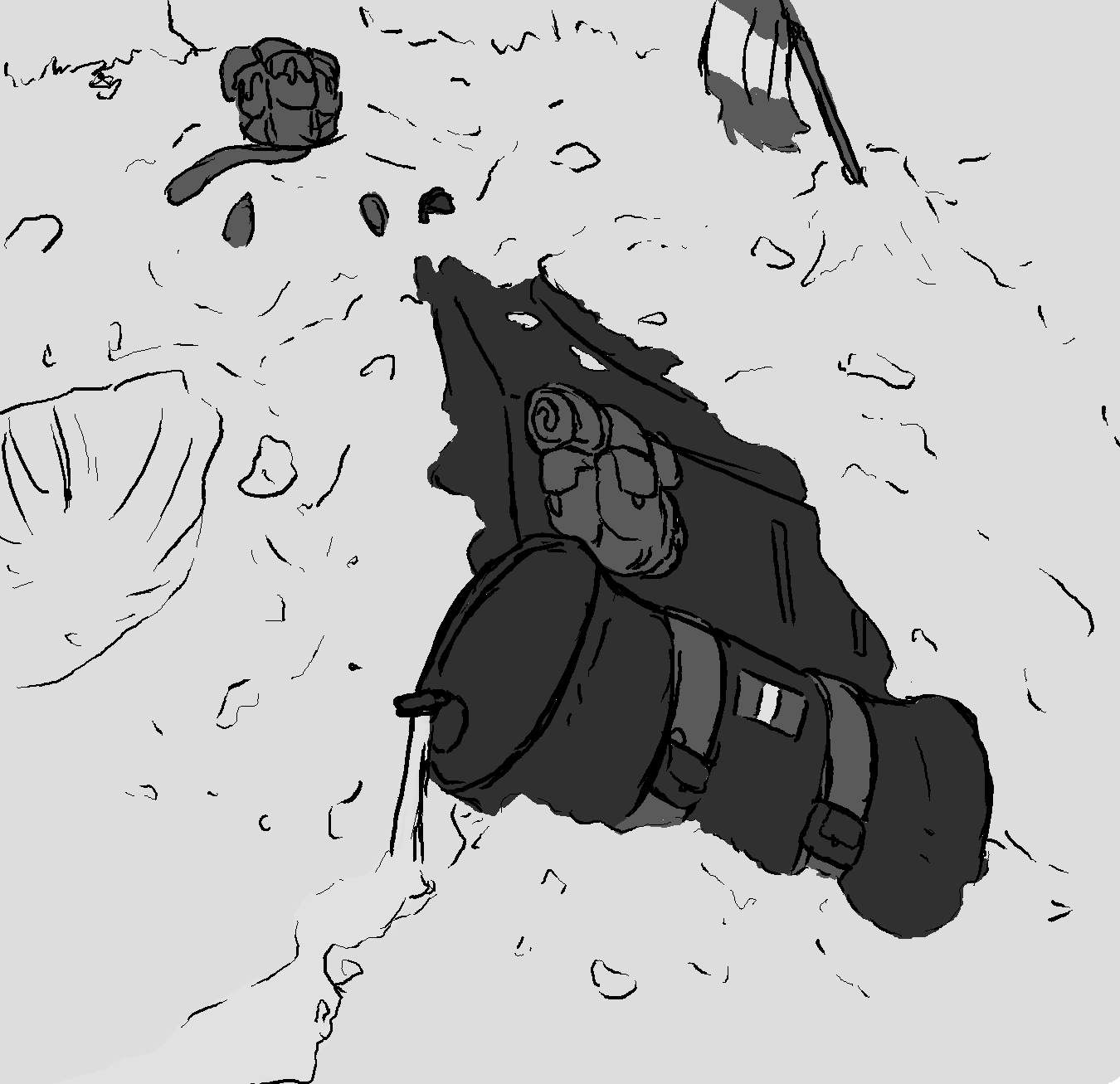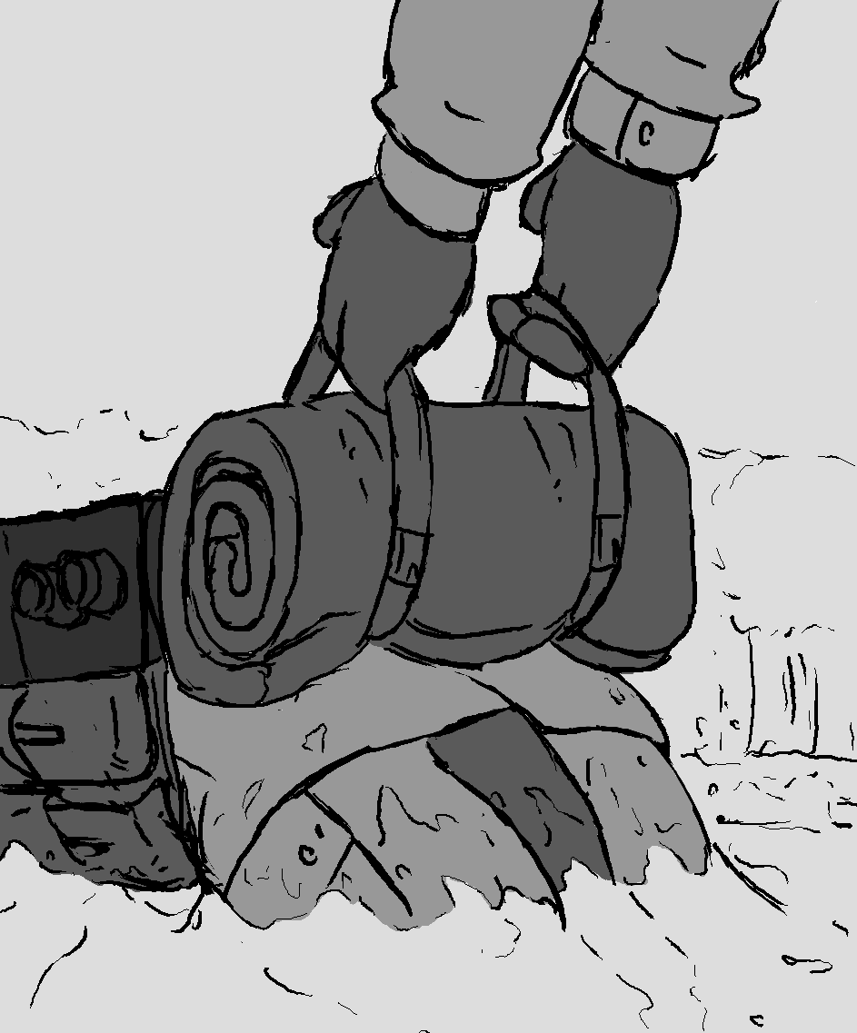 As you try to lift up the body to see if you can carry the radio, it becomes clear that if he had any ammo on him, it's unusable under all the grit. The radio's also pretty heavily damaged, but you could try dragging it along in case you find some parts. There's only one small pouch on it though, so outside of the sleeping mat, it doesn't look like it could hold much, it's basically all mechanisms inside of there.