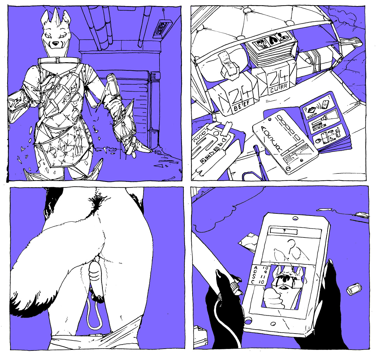 2- Suddenly stopping to peel off the last shreds of foil from herself, revealing a simple and not terribly flattering under suit, she unslung the satchel and quickly glanced over the inventory. Immediately disappointed to see there wasn't another set of clothes, she'd have to shake the busted foil out of the under suit and make do.