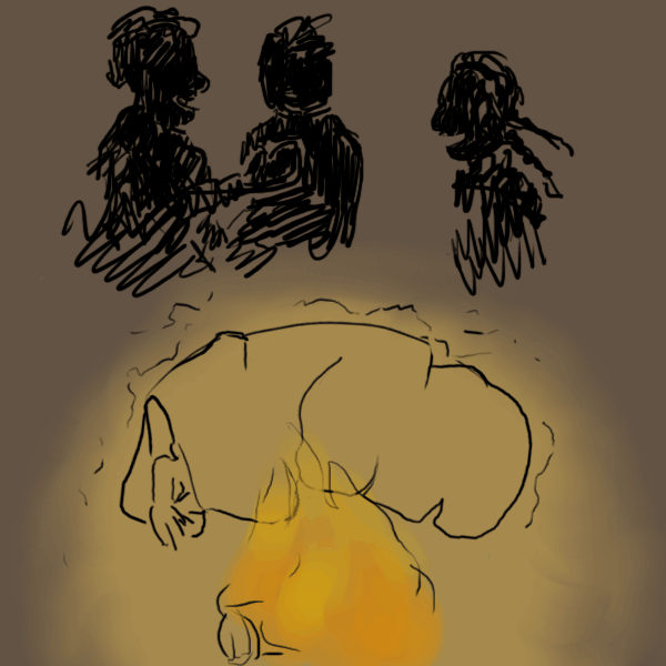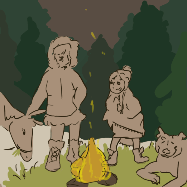 You put your hands up in mock defeat. ”Alright, alright, I’m not here to get in your way. Was just checking what kind of person was camping out here, and if it was alright to join them by the fire. What job has you in the hills in the dead of winter?”