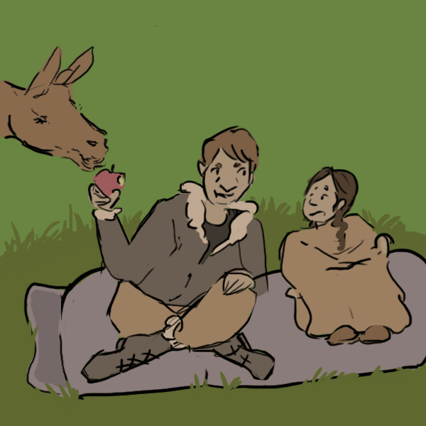 The girl proudly straightens her back and wraps the blanket around her shoulders tighter. For a minute the only sound is the crackling fire, and Murmer enjoying the first green grass hes seen in months.