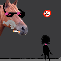 The fashion horse responds to your sacrifices. "Neigh" "You can't smoke here." "Neigh." "Me too, buddy, me too." FASHION HORSE END. REMEMBER KIDS, COOL PEOPLE DON'T SMOKE.