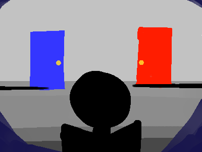 Clearly, the Blue door is for right-handed people while the Red is for left-handers. Select the appropriate door.