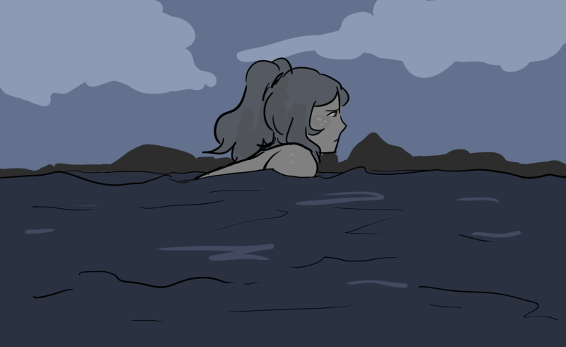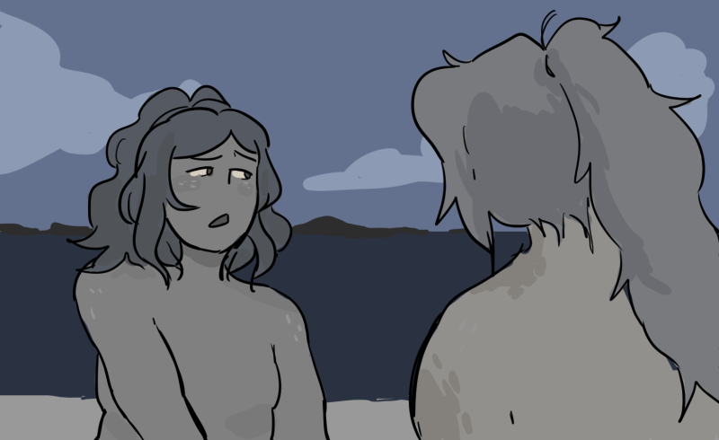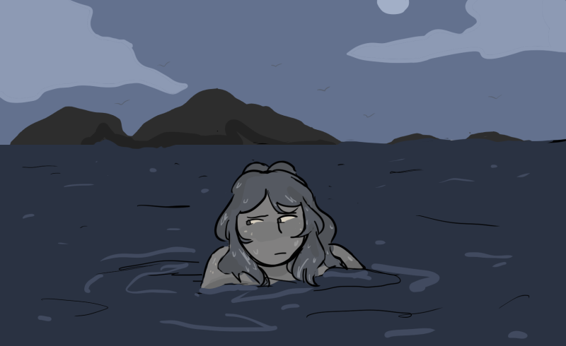“Mmm, it’s fine...The saltwater doesn’t help it at all! Why are we even here for so long, anyways?” The younger mermaid pouted towards Malachi. She only responded with a deep sigh.
