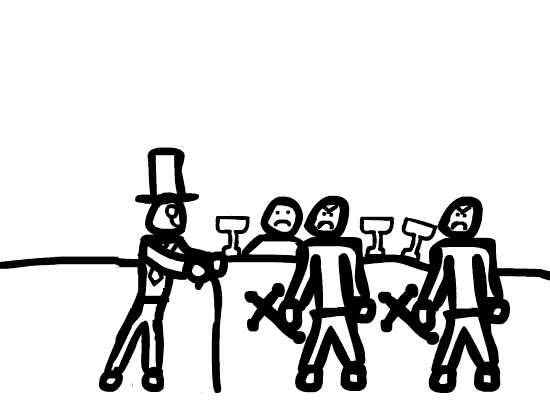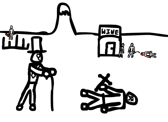 To which Walter heads off, in quite the dramatic fashion, intent on recruiting others to his currently undefined plans and processes. He fancies a show, at the moment. Perhaps a visit to an opera house is in order. He'll have to tidy Marcellus up for it, but maybe the chap cleans up nicely. And mayhap he'll be able to recruit a talented opera singer on hard luck, looking for the long lost heirloom of her family? Or perhaps he'll find an exotic dancer girl, foreign and beutiful, who harbors an intense hatred of the upper class, to which she exposes our hero to her lethal fighting techniques! Or maybe...
