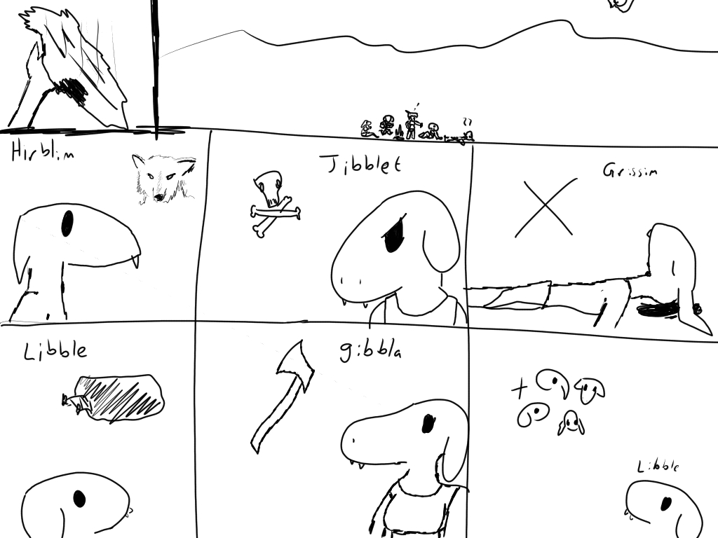 Upon turning two years old, Driblis was of age for a kobold! SHOVEL was acquired! Driblis proceeded to speak with Jibblet, who was not friendly. Driblis crafted a leather hat for Jibblet, but condition was unchanged! Driblis splashed in the lake with a shovel! Driblis then took to the caves under the camp... and encountered a ZOMBIE GOATS. After defeating the ZOMBIE GOAT, Driblis fashioned a goat bone helmet and a goat bone shield. This impressed some of the villagers, including Jibblet!