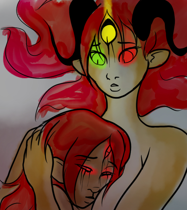 Clay sighs. She knows better than to go over this again, but she can't help herself sometimes. The new baby is beautiful and healthy. Her third eye will probably open around adolescence, and the heterochromia is not especially unusual for a naturally born first generation half-blood.