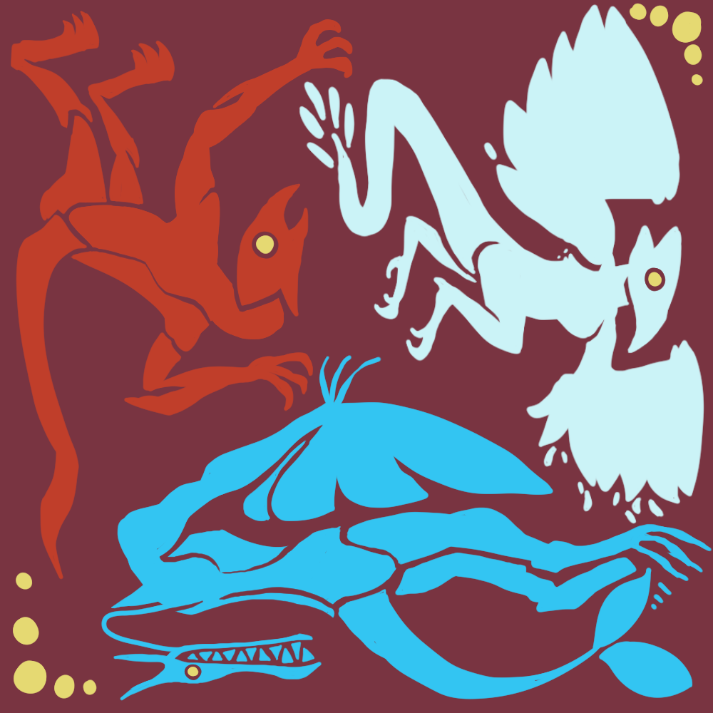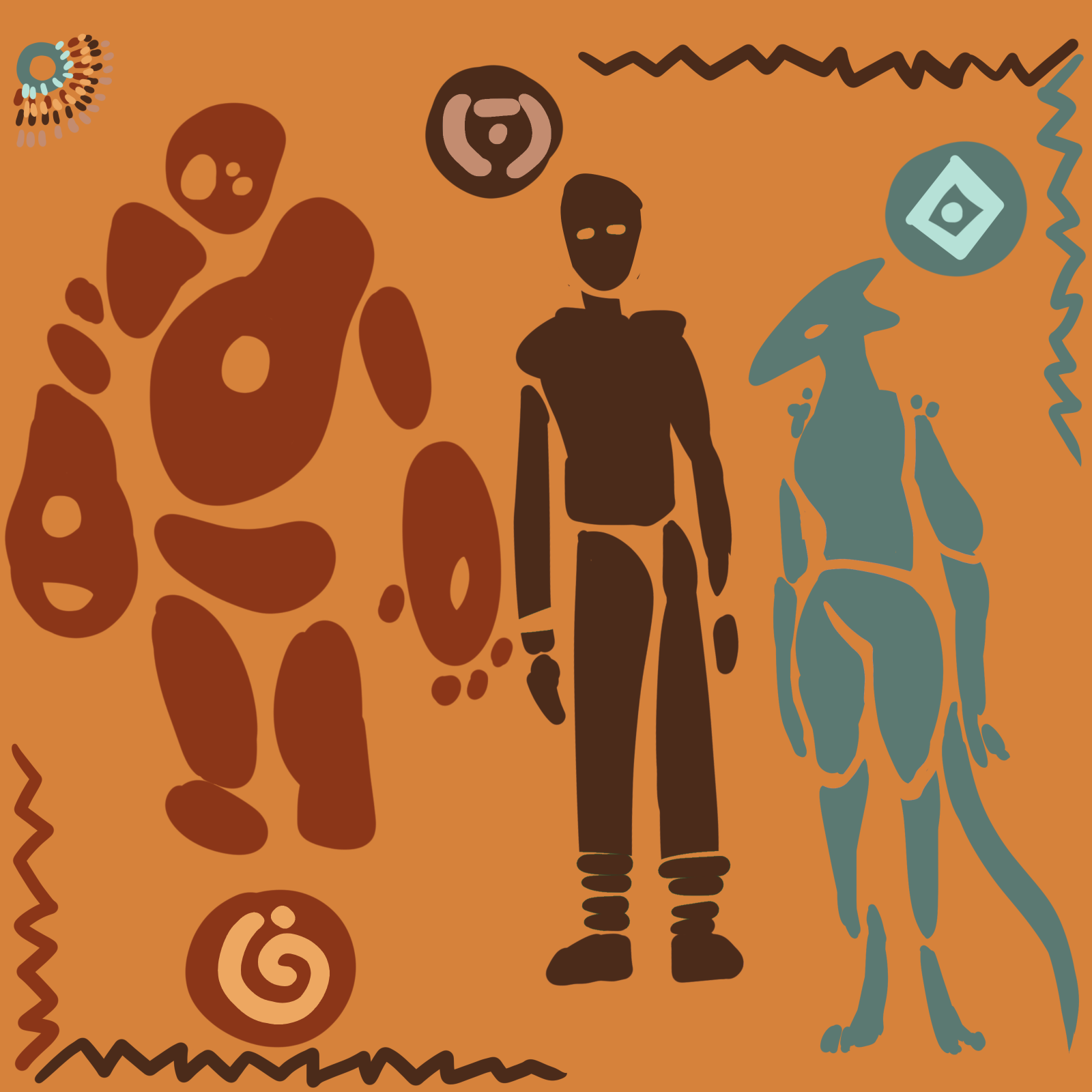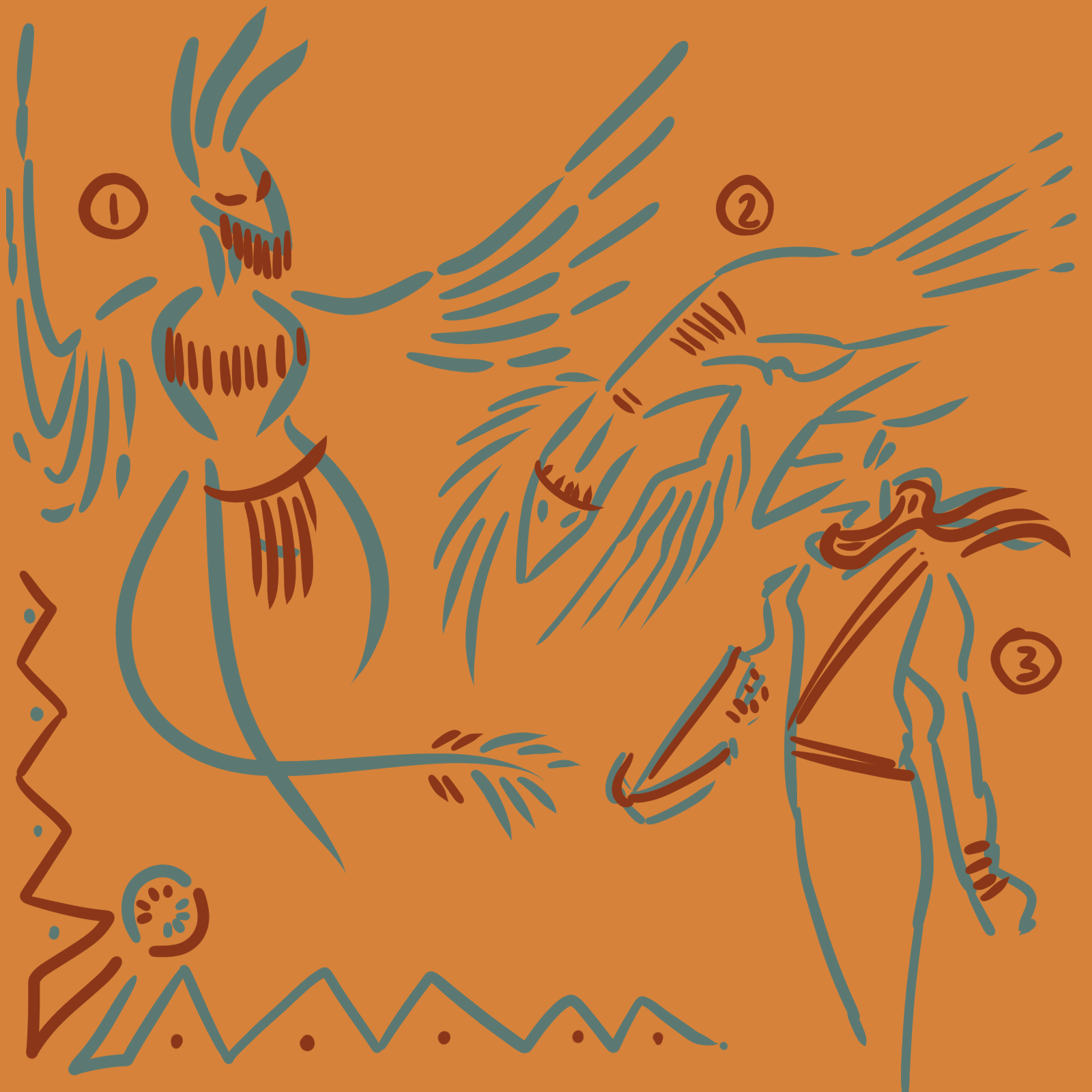 Right: Ikarians. Small to medium pseudo-reptilian creatures. Inhabit the Mountains of the Sun to the north. Dignified and swift, the children of the Sun herself. Very diverse range of subspecies, each with different talents.