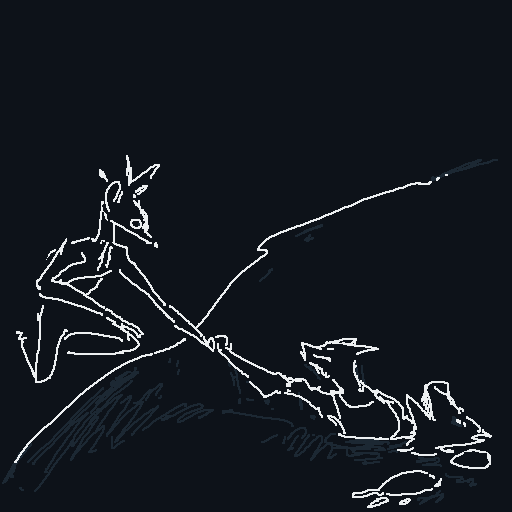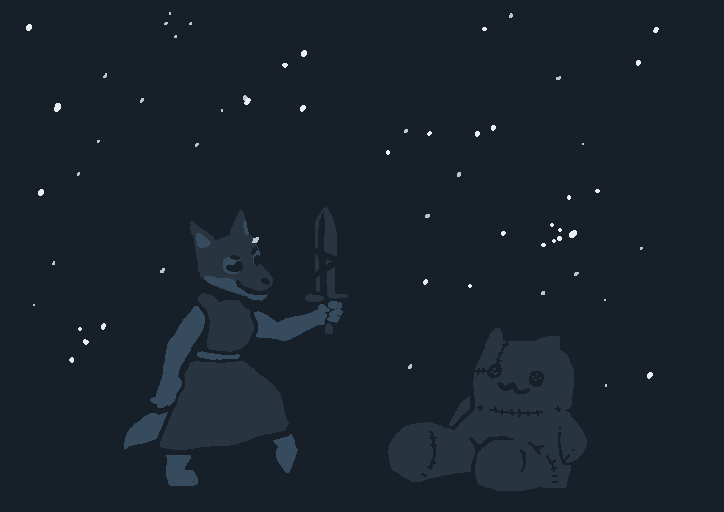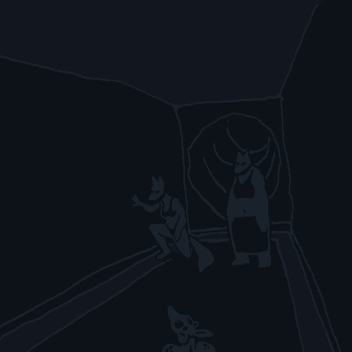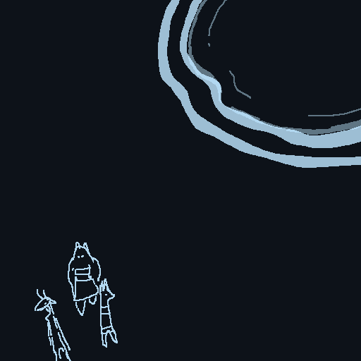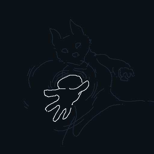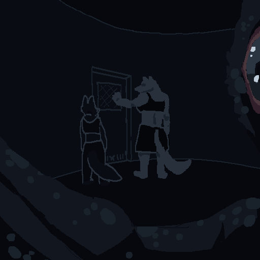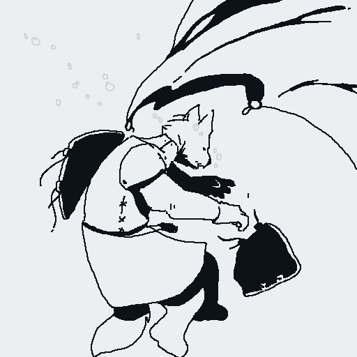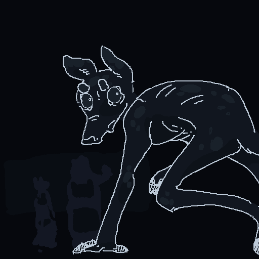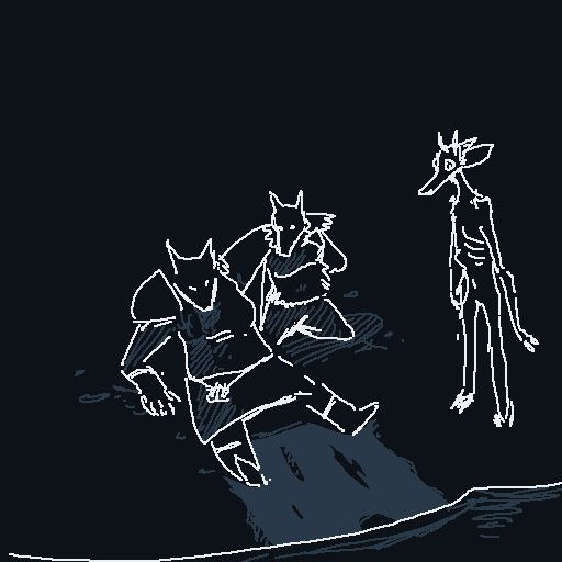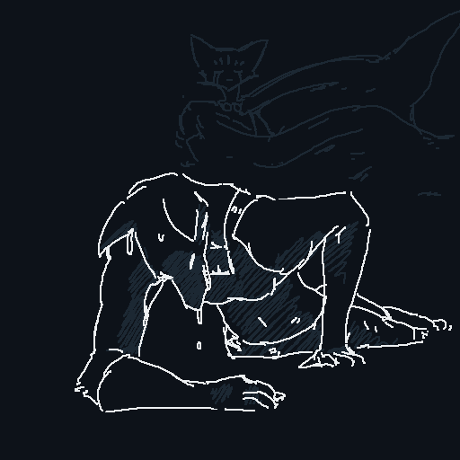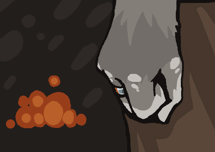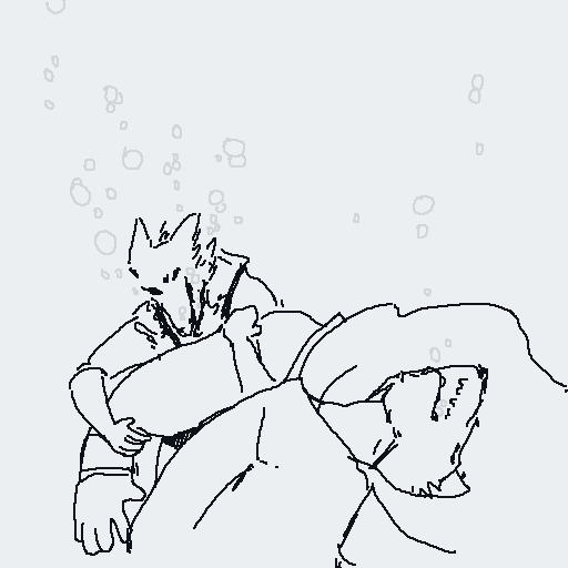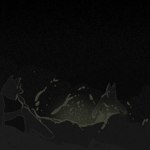 There are two thuds, one very heavy, almost a splash, one light. You recognize Spots' voice; he starts making gleeful sounds, shouting gibberish like he's just received the biggest present of his life.