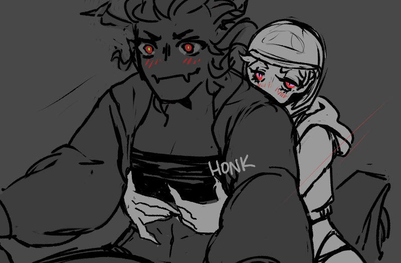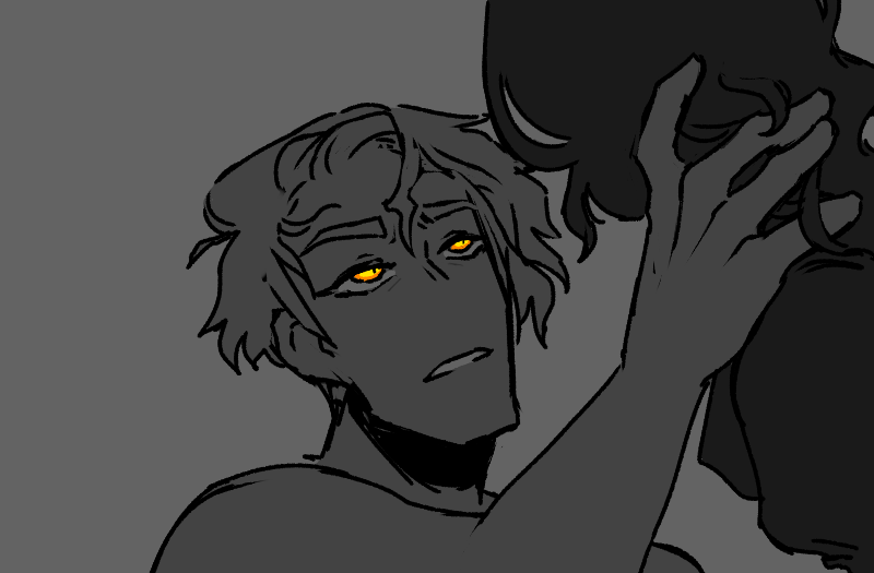 The doors close and Strip’s hands are on Lamb’s waist right away, sliding up to her ribs, and Lamb is reeling with the heady feeling of being wanted as the other closes the space between them. “You’re so fucking cute,” Strip mumbles, against her lips, and Lamb has no idea what she’s doing that’s cute but it doesn’t really matter. Strip’s kissing her, up against the chilly metallic interior of the elevator car, and Lamb feels herself pressed up against the wall — and then breaks away to laugh when she feels her back pressing half the buttons there, all of them lighting up behind her.