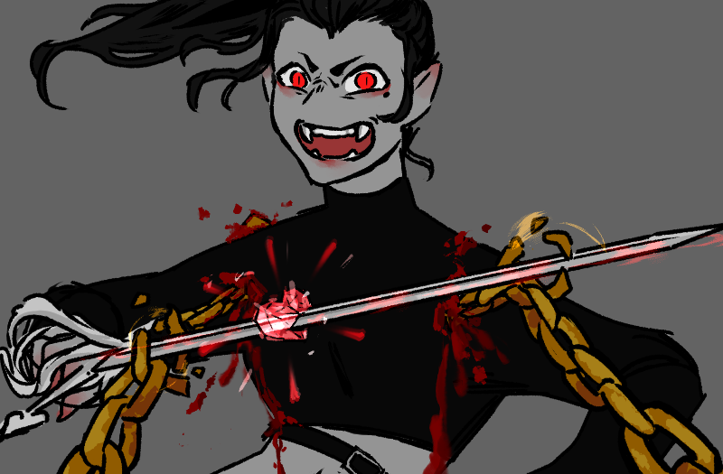She lets go of Lamb’s shoulder, and Ricardo is very, very aware of how hard Lamb is staring at him. Her expression is not friendly. “Lamb and I have this agreement that any time she’s in combat, with any vampire who isn’t one of her covenmates — she can go all the way, if she can manage it. She can kill ‘em. I’m not allowed to intervene.”