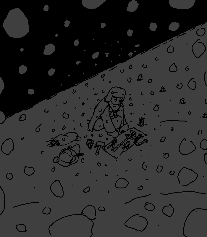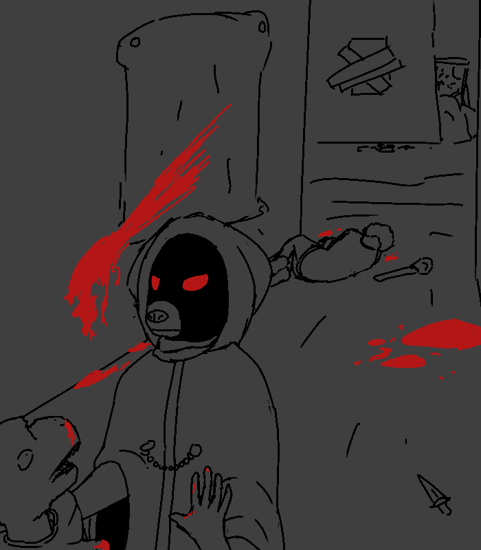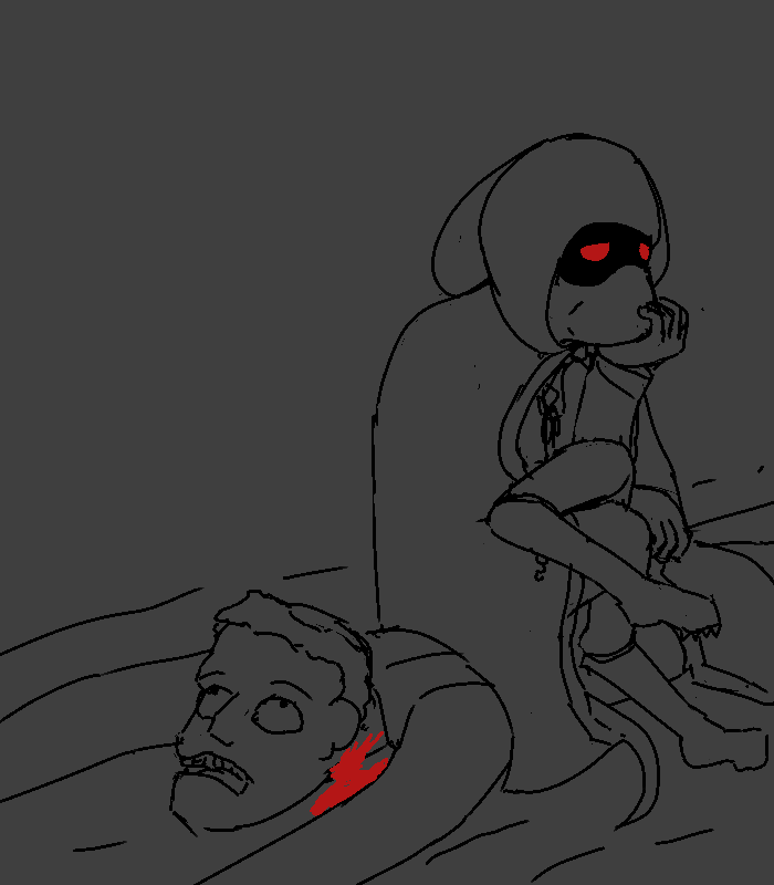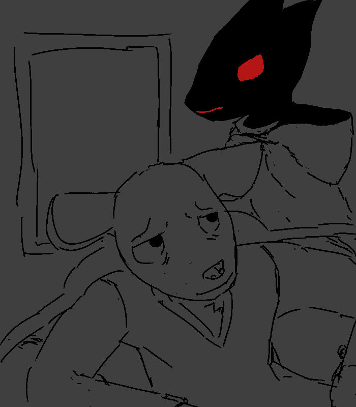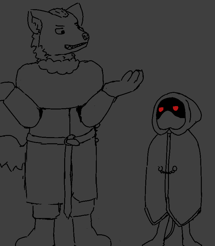 And, sorry to say, you've sensed one prowling about town since you got here. While you could hole up, you've been thinking you'd better get a drop on it before it got the drop on you, but... now that you've seen him, he's probably why it's here. Offer your apologies, but if he doesn't have any non-charlatan anti-demon defense on him about, he's sausage on a stick to it. The only advice you can give is to make a 'demonic pact'. If he gets attacked, he should try offering it something worth more to it than the blood in his veins, whatever it wants. It'll be bound to accept, and it can't hurt him as long as he doesn't hurt it.