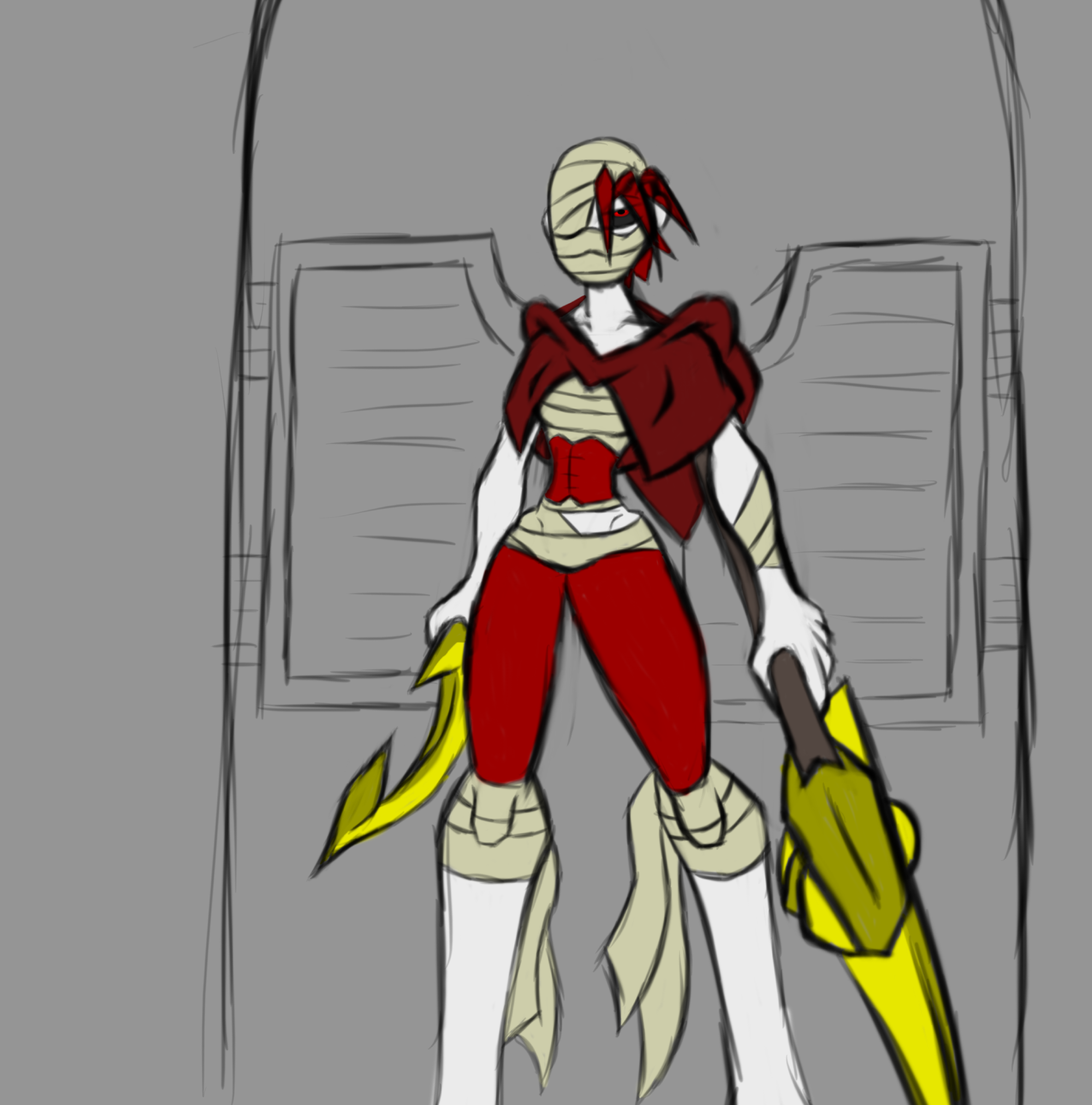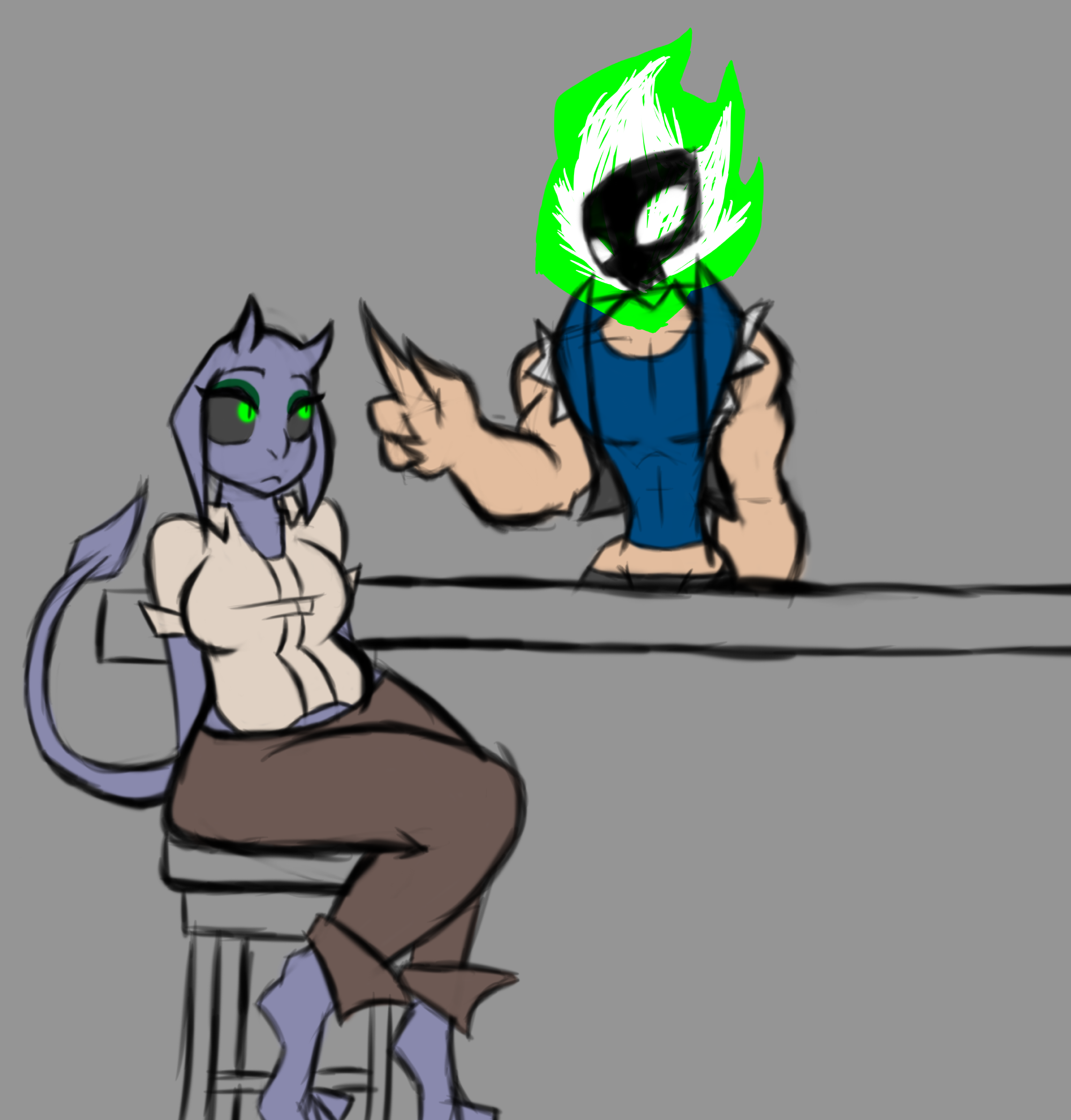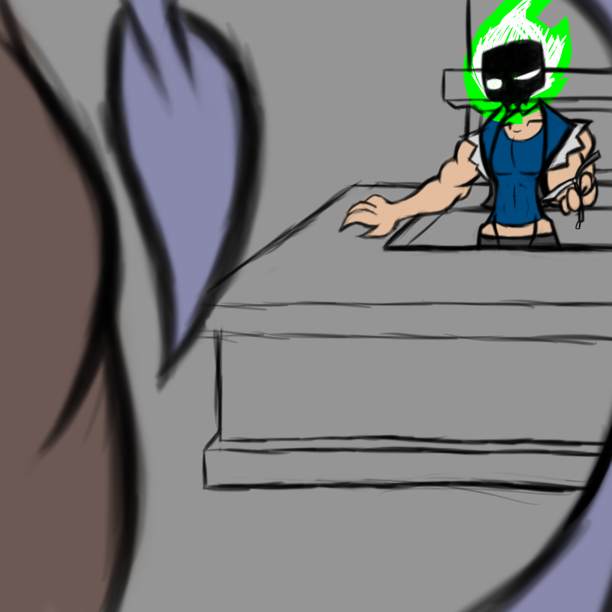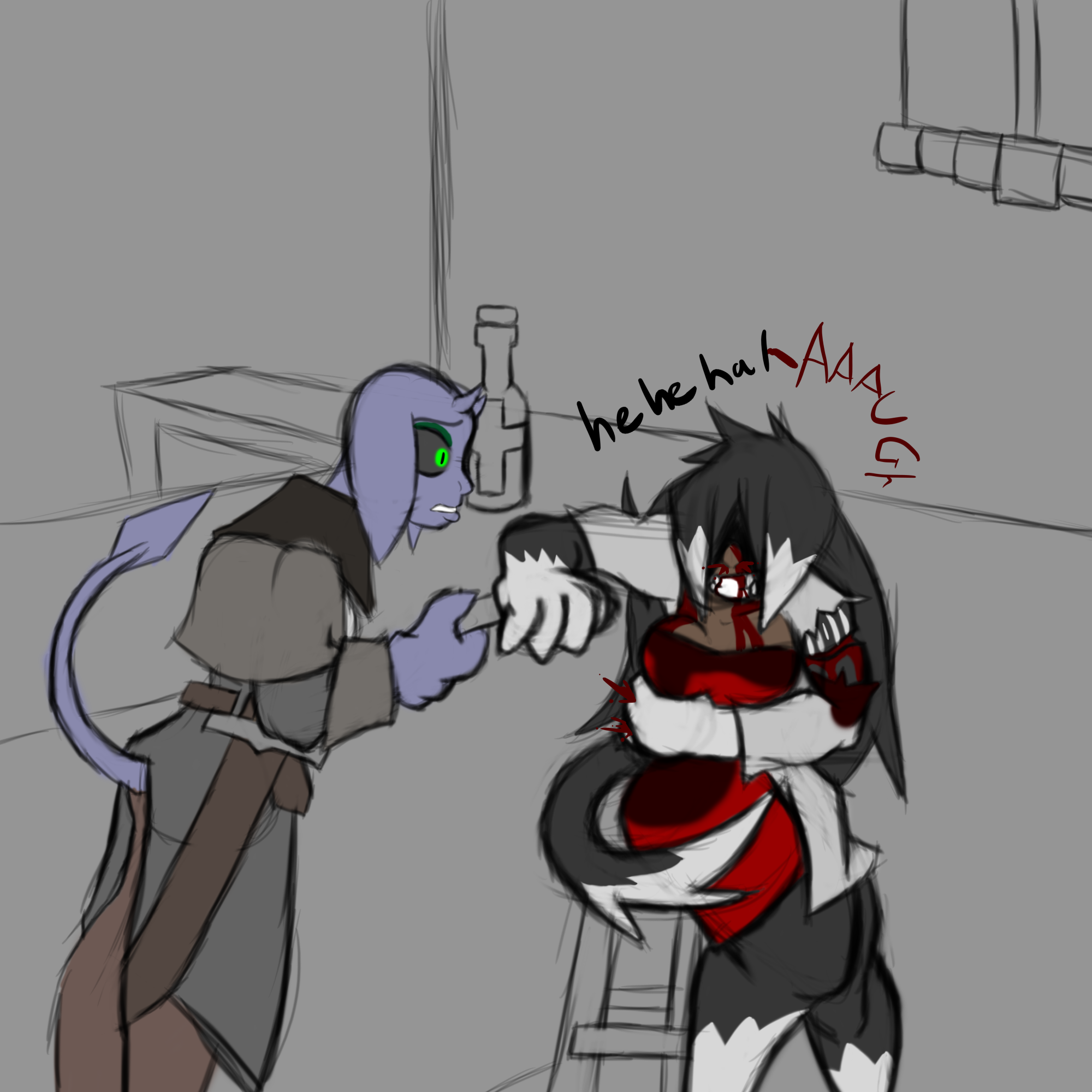 o-oh is that the Drakkunmesser? made by the blacksmith Drakkungall? where did you get that sword? Daddy told me about it. he said that it was considered one of the most powerful nonmagical weapons ever crafted! it's a shame that the blacksmith died, he made some really amazing pieces... uhm. are you okay? you seem upset. d-did I do something wrong? I'm sorry! it's uhm. it's a bluesteel bladed longsword. bluesteel is a little heavier than steel, but it holds its edge incredibly well, and can be shaped to be much sharper than traditional metals. this means that Bluesteel swords have a lot of shear strength and don't require as much maintenance.