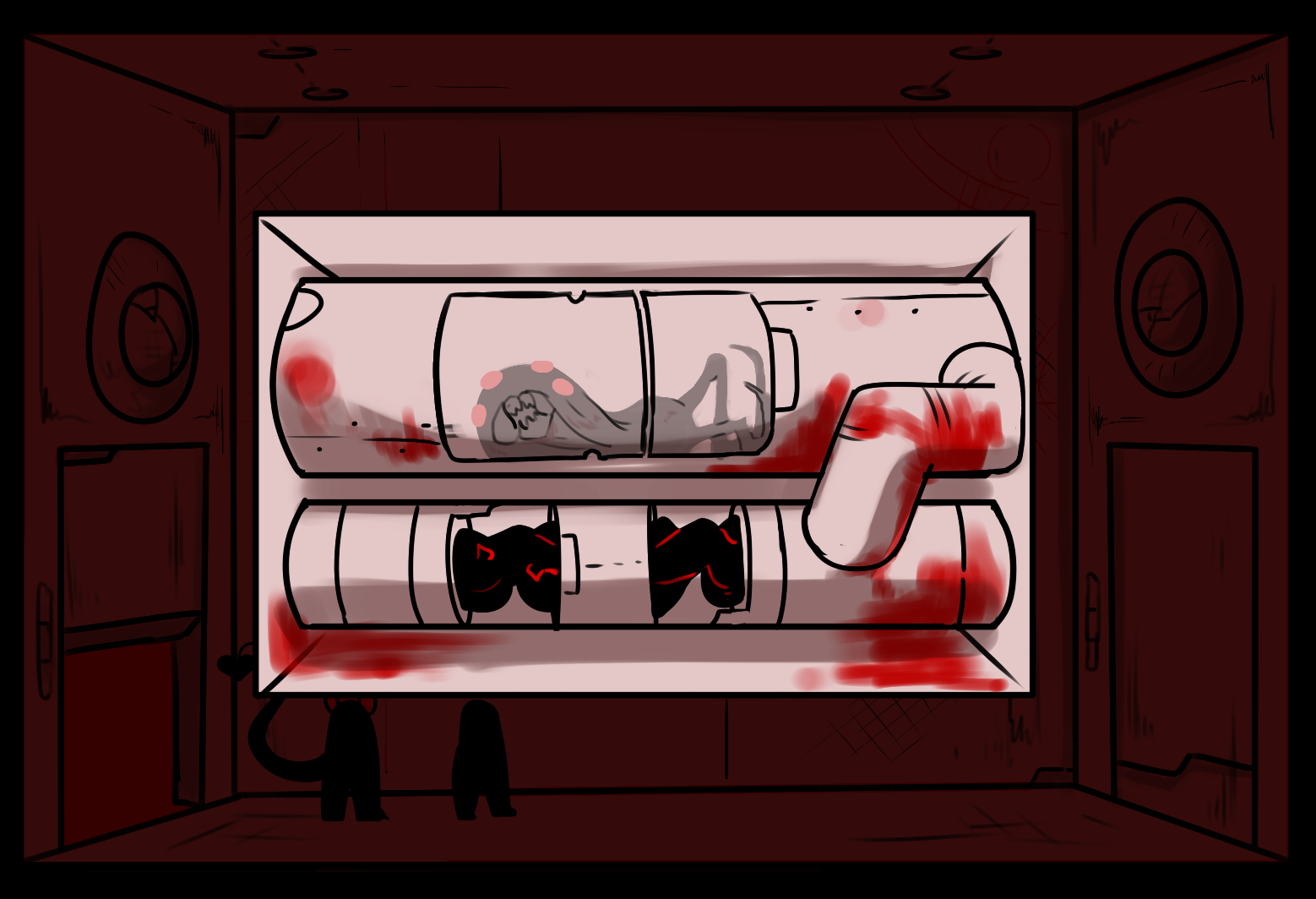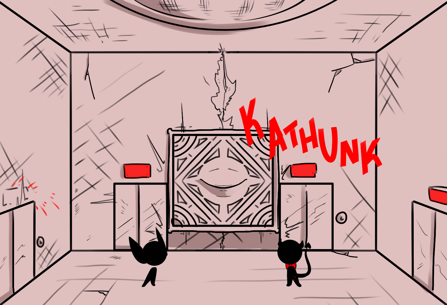 I suggest looking down the hallway just to make sure nothing is coming down and then try the other door you haven't been in yet. Before I kinda just wanted to get out of here ASAP to reconnect with Vol but now, even though it is probably A very stupid idea, I kinda want to check every room to make sure we aren't leaving behind any other prisoners that might be in here because come on. No one deserves that.