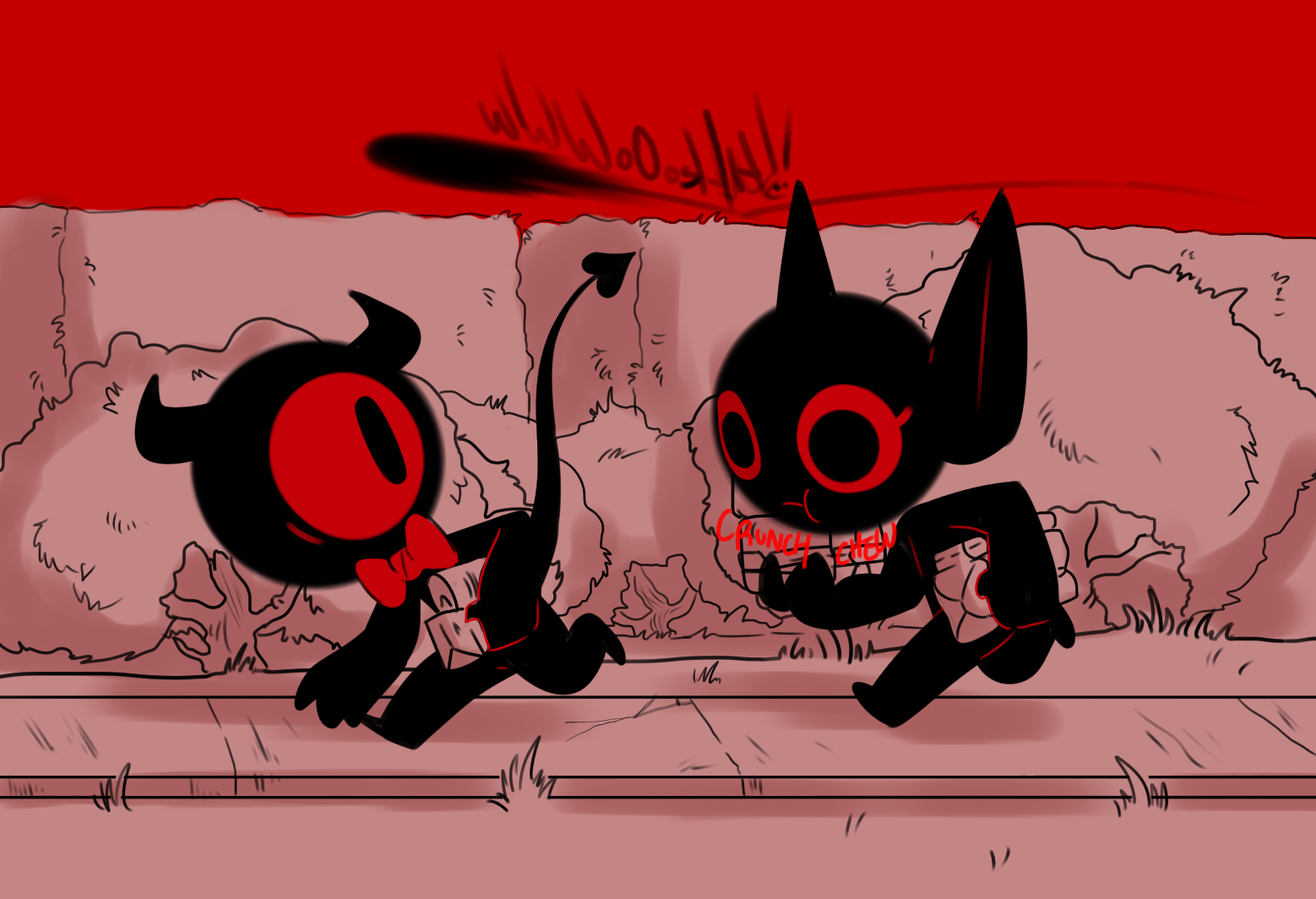 Almost immediately after stepping out of the house you're blind sided by something small but heavy as hell. You're tackled to the ground.