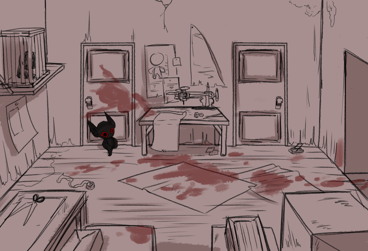 Delphi pokes her head through the door before slowly entering. Tarps are strewn about the blood stained floor, boxes are shoved into the back of the room. The smell of blood is poorly covered by the stench of cheap perfume.