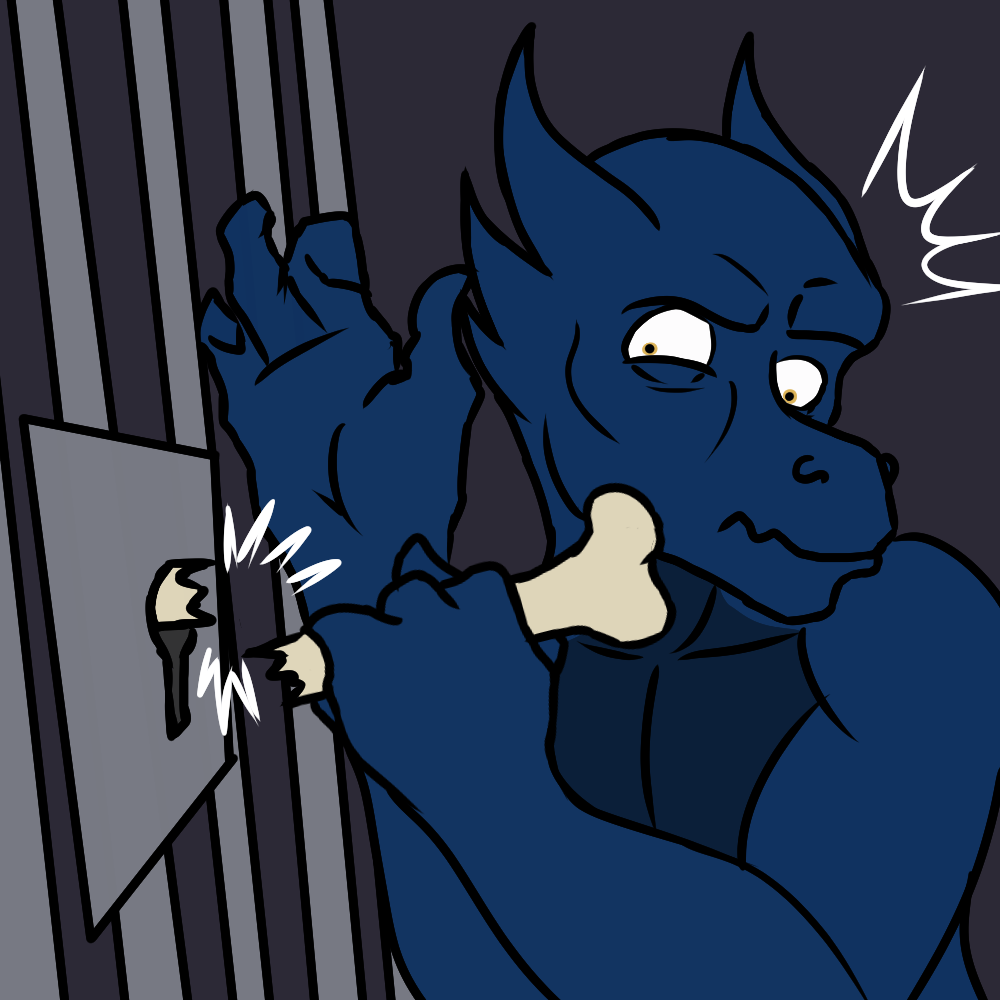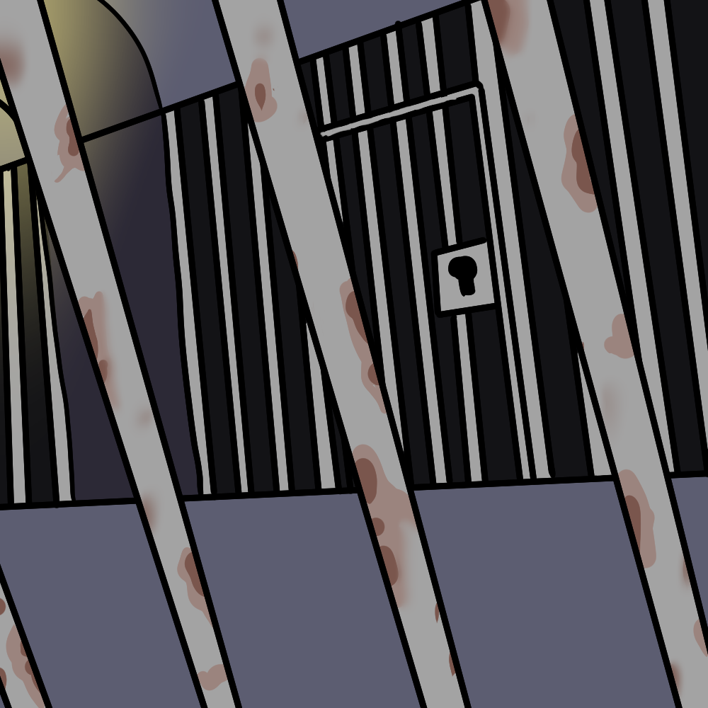 >Examine the cell door lock, both visually and by touch, both inside and out. Usually locks with this old style of keyhole have real crude mechanisms and can be defeated by even a simple piece of wood shaped the right way. Heck, the keyhole is so big you may even be able to fit your finger inside to push the lock latch back.
