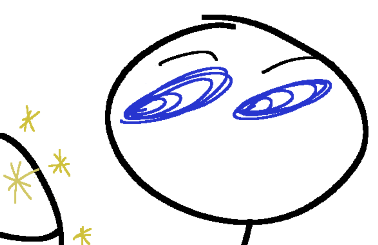 "Who the fuck are you?" Pretty sure the 'stars' are his eyes, like my and the kids squiggles. "Hi Hi Hi. Ya havin' fun, son?" Holy hell that text is horrendous.