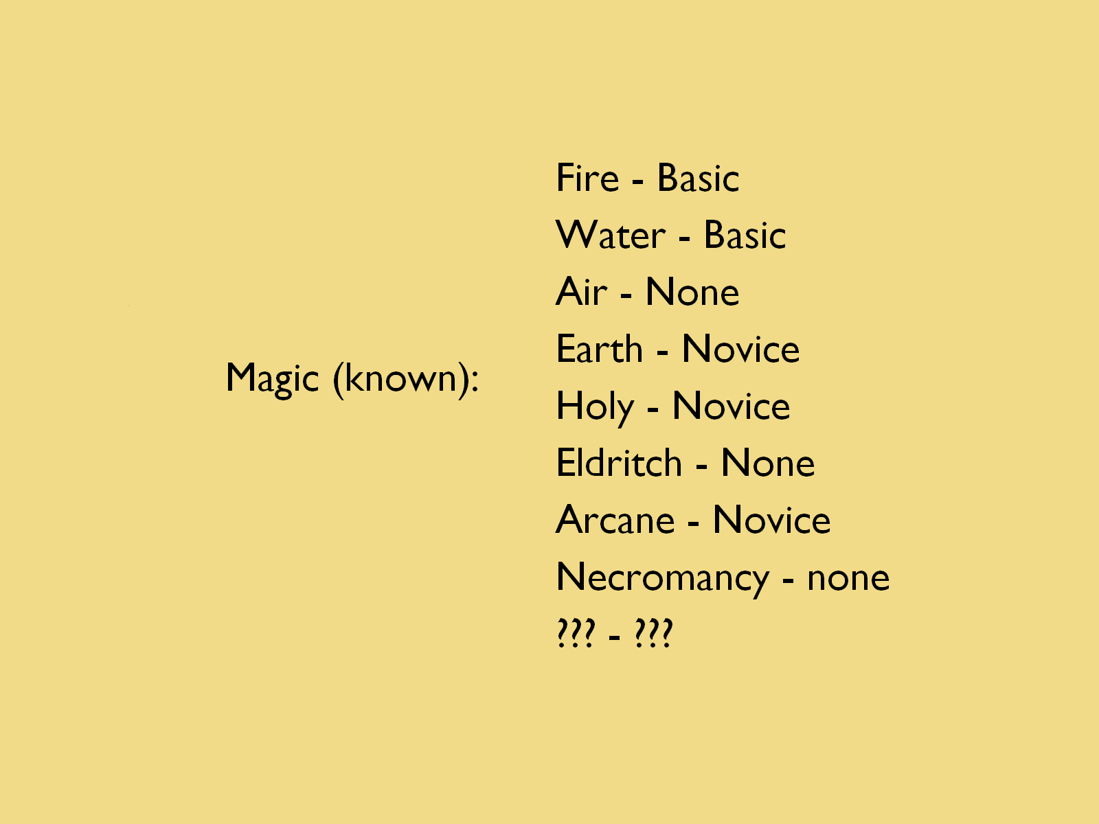 -Light beam: A small beam of light that comes from the user’s hand. The first spell my master taught me, and it’s quite easy to use. It will help illuminate dark places. It will also blind enemies for some seconds if casted and aimed right. My master said that some beings not used to light might get hurt if I used it against them, as well as some beings of eldritch origin, but I never got the chance to test it… and on the later, you really hope I don’t get the chance to test it. (I don’t really know in which category of magic Light beam falls… It seems holy, but I’m not sure…)