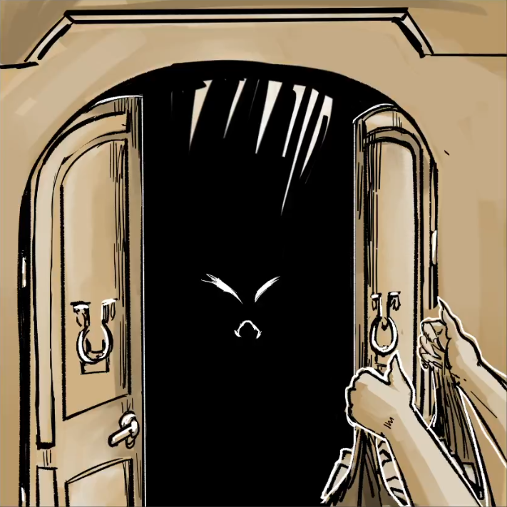 “Who did it? What were they after?” Gatezi asks as they pull a step stool and a dampened rag from a small closet and quickly use them to wet the etched eye above the door lintel. I can hear the swivel of the eyeball as their hand passes over it.
