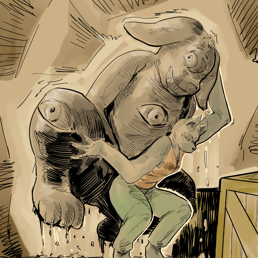 “Nah, see,” He waves my words away. “I found this perfect spot to watch from without no Tats or Lanks to get in the way. I just don’t got the muscles to get there, so I need your help. I’ll lend you a hand later, I promise! Ain’t I good for it?”