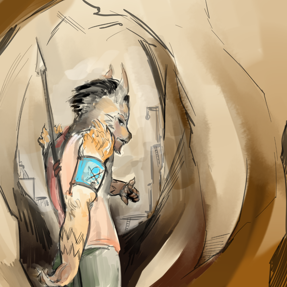 “Oh, are we back to a first name basis, Keeper Brass.” She gives a light snort. “So, what brings you from your cavern of tomes and dust, Caevaexerin?”