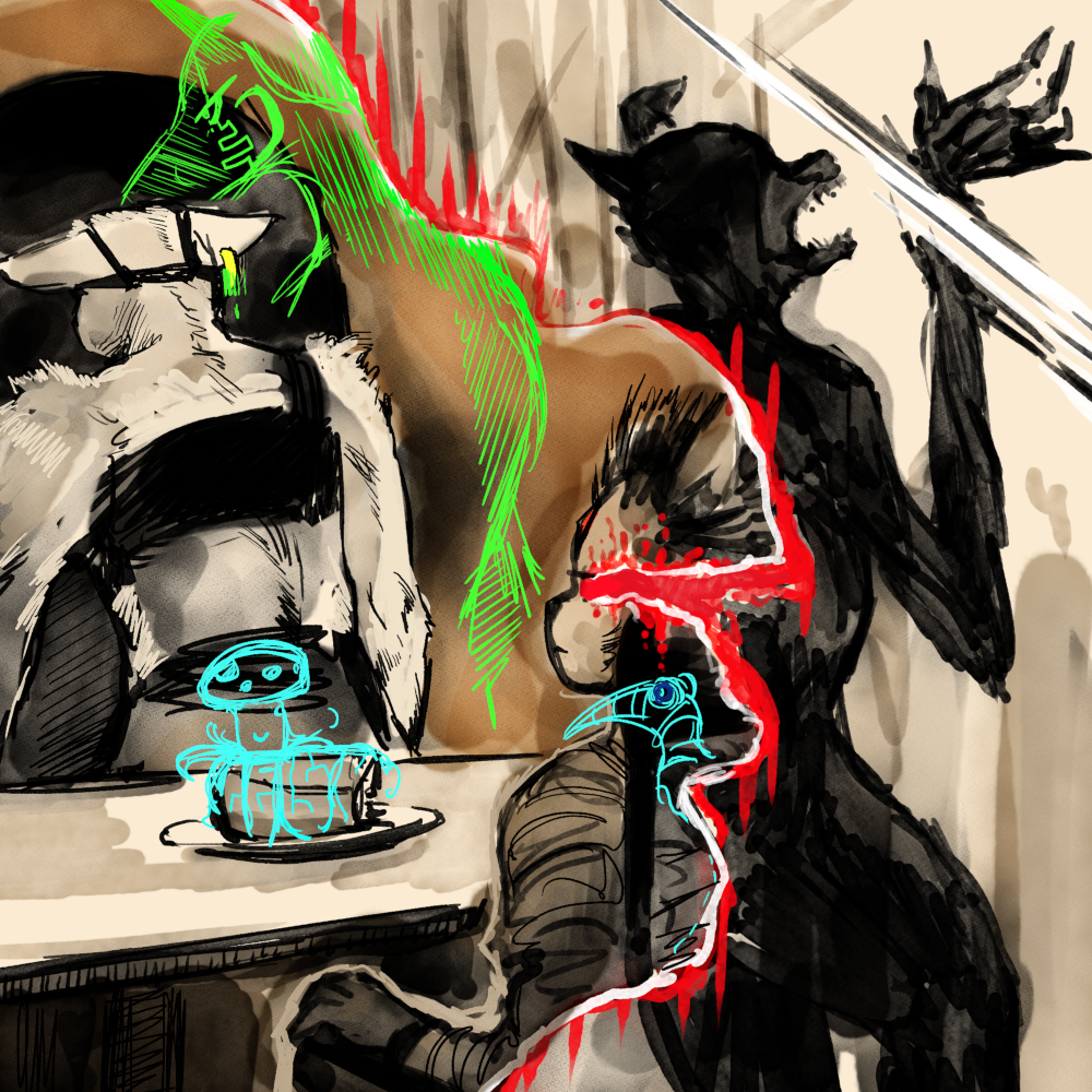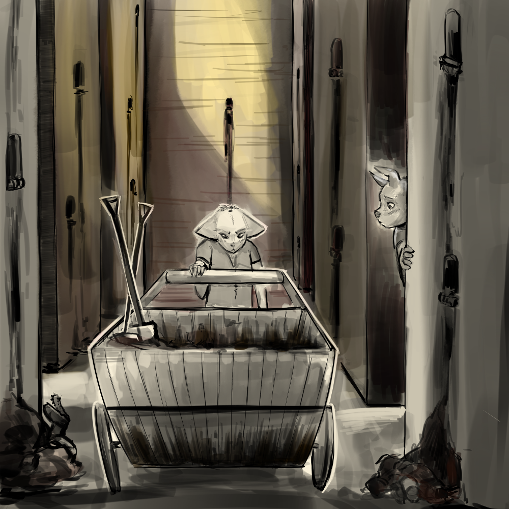 “Oh, I believe it was a toiler from… the mines.” I suppress a wince and Silver clicks her tongue. I continue regardless. “They had a message from the Mongers and… I don’t believe that is necessary, Martinet!”