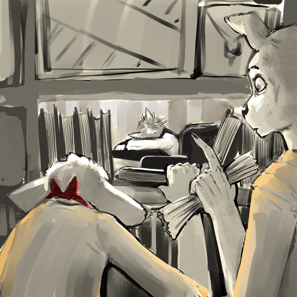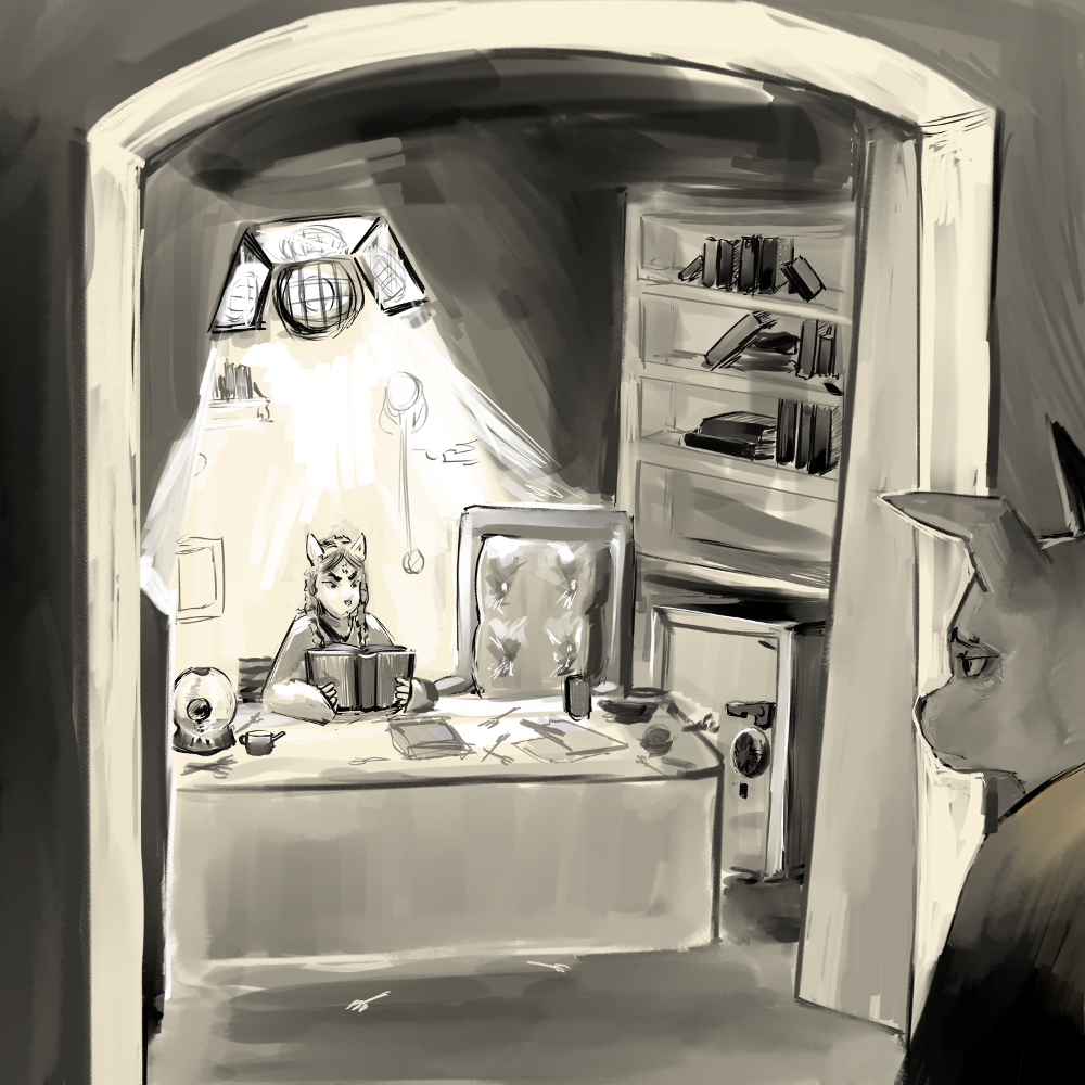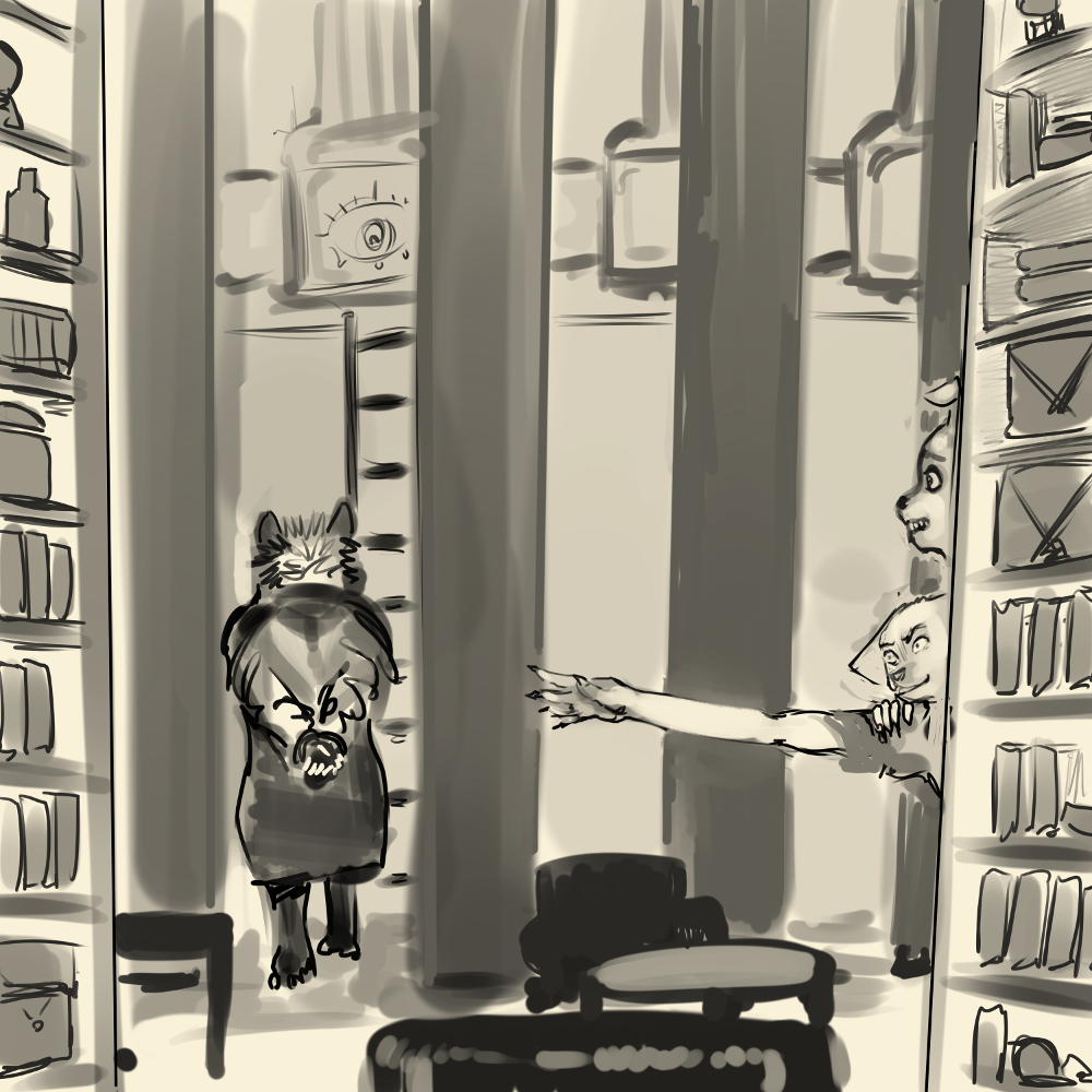 “Preceptor safety is paramount.” Gatezi interjects already next to the bookshelf. They tap their knuckles against it in a staccato pattern. Aonaz or some other guard must be behind it as a second later a grinding sound comes from it and the shelf begins sliding out of the way. “Once you’re properly defended, we will go recover your ward and guards.”