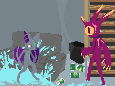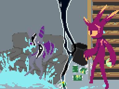 As for force, it's this like, pseudo-liquid with a bunch of weird properties; it's the same stuff as all of that blue stuff downstairs, A.K.A your blood. Humans can apparently use it to do a whole bunch of stuff, but beasts like us need cores to do even the most basic stuff with it, since beasts are already basically living, talking cores."