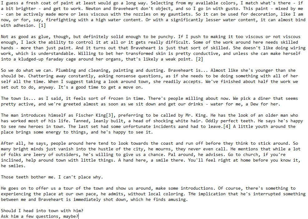 Oh, as for pay... Heroes new in the field start with a stipend that is generally enough (from feedback I get from Heroes) to afford to feed themselves and find a place in town. Some of them elect to stay in their Agency branch and we have living spaces set aside, but they have to pay for utilities and internet, not to mention being on-tap for emergencies.