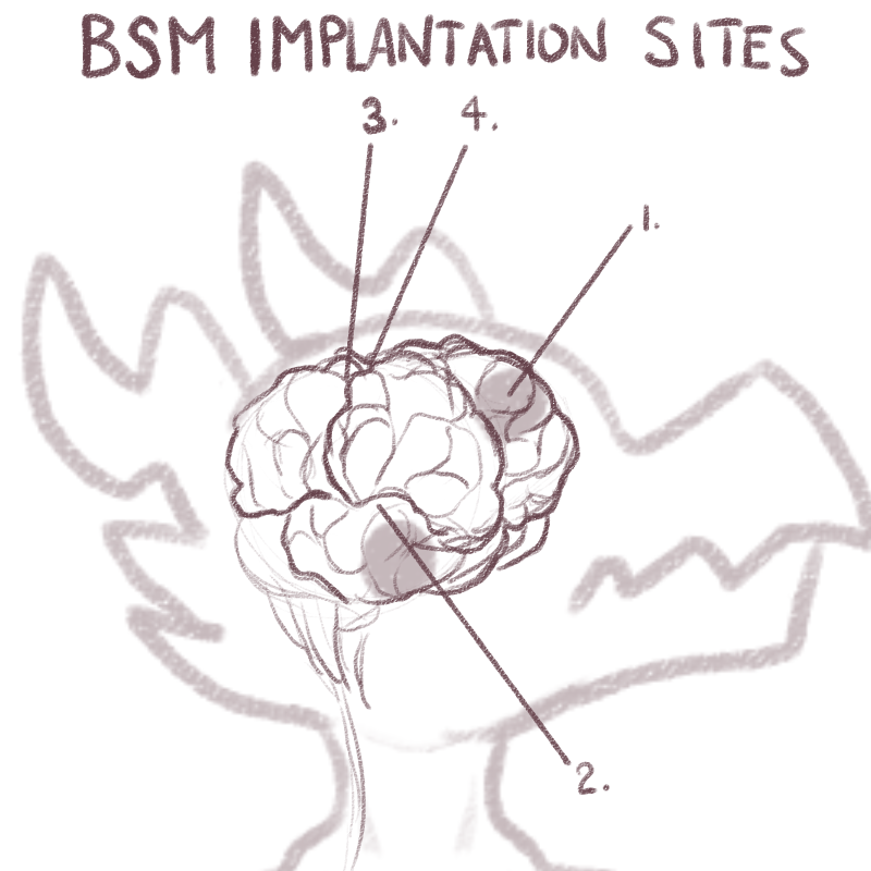 The Behavioral Suggestion Module (BSM), a body of nanomachines implanted into four sites in the AVATAR's brain, is your first line of communication with your AVATAR. At this early stage, complex communication with the AVATAR is not possible, and so other means must be used to obtain their help instead. To facilitate this, the BSM provides access to the desire and reward mechanisms in the AVATAR's psychology. Suggestions sent via the BSM are divided into four categories; the category of a suggestion indicates which type of desire or reward will be sent, such as via the hunger urge. These categories each come with an inherent intensity, so some categories produce stronger suggestions than others; for example, hunger- or reproductive-based suggestions will confer greater urgency than a haptic-based one.