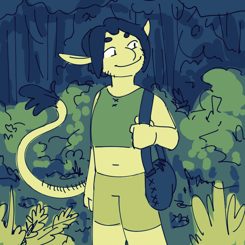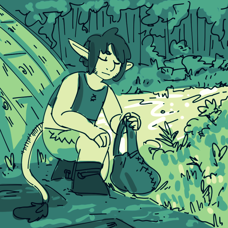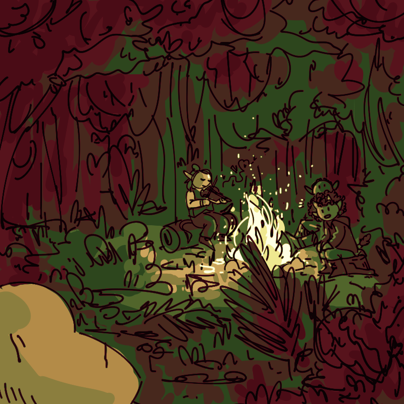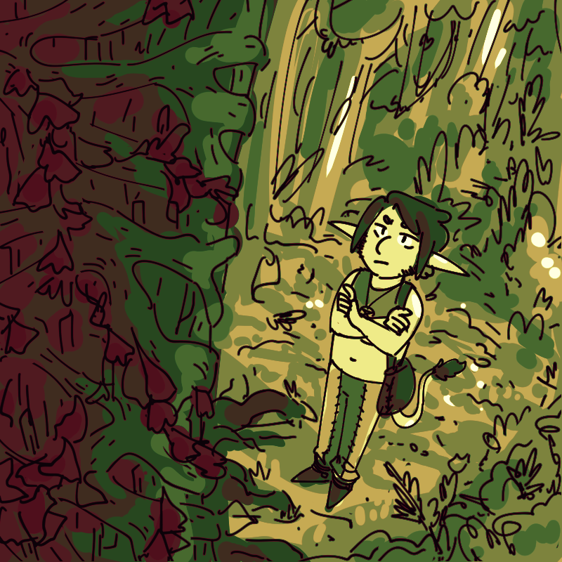 "We've been hired to spread the word along the coast that the Archmages are looking for five pupils to be taken to Cemerit, trained, and then take their place so that they can retire," Rook'na explains. "We're balladeers, when we're not saving lops from the perils of the southern rainforests."
