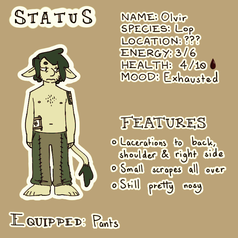 "Good! See, he's fine," Dove cheerily dismisses the issue. "Now, Olvir. Rook'na was telling me that this is the first day of your pilgrimage. Where you headed?"