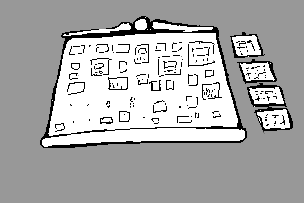 I take a look at where the mission board are, and there are many paper tags indicating requests for goods, people, guards, and information on missing people. All in various colors to indicate the required rank and importance based on height. At the side are a few wooden signs requesting wild herbs, pest control, mana crystal collection, and scribing duties.