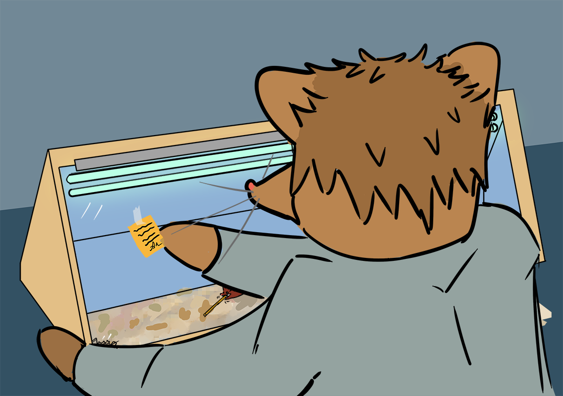 You have been watching it check the other cells for hours now. Every once in a while, the creature takes one of your siblings and brings them to another room.