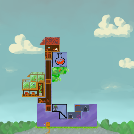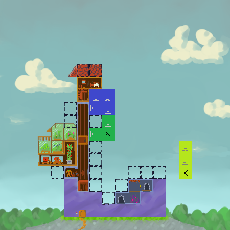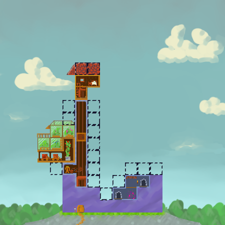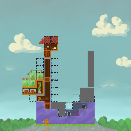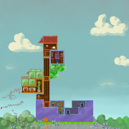 One can't say no to the classic spike trap! Simple, effective, and requires very little effort on your part. The particular shape of the the room does make it a bit awkward though. Under each door is a trap that leads to a pit cored into the foundation. Otherwise... Hmm.... Aha! How about a spike anti-pit? Just lay down a glyph that switches around gravity and have the hapless invaders fall up into a trap door and towards spikes on the ceiling. Sometimes, you've just got to think like a wizard. Would be nice to use such gravity magic while building, but that would require more research and enough room to experiment.