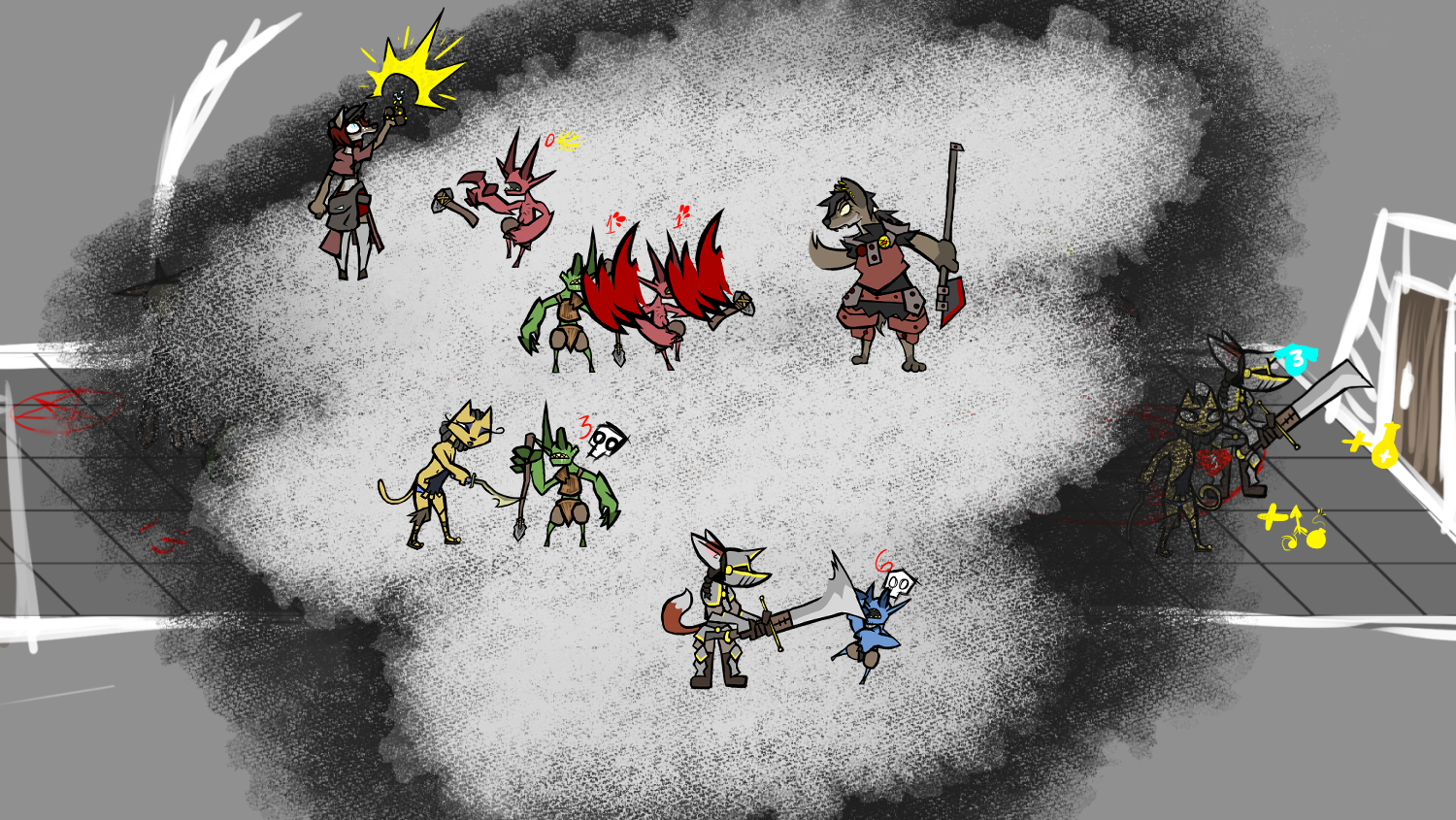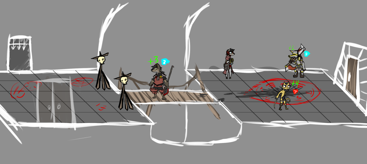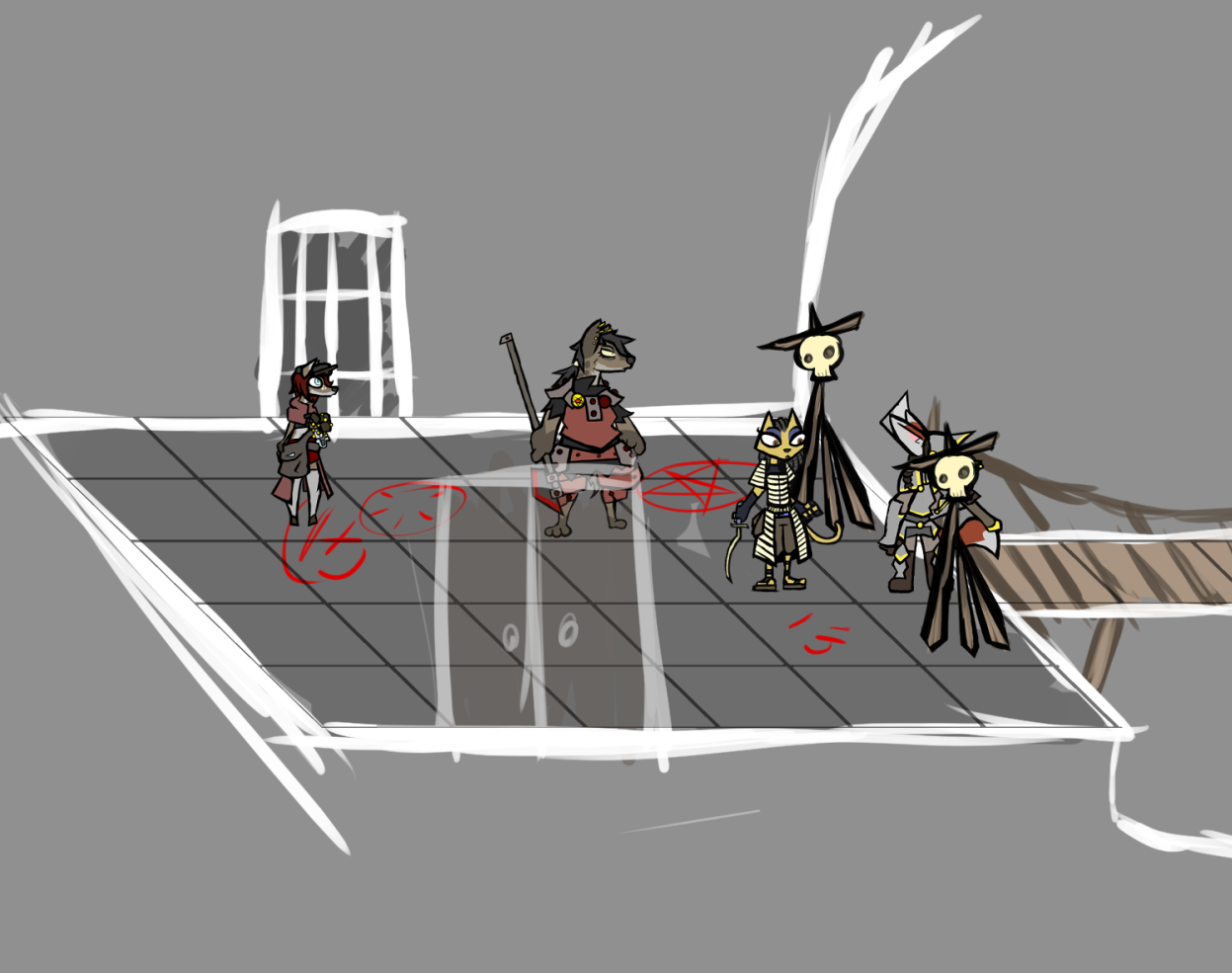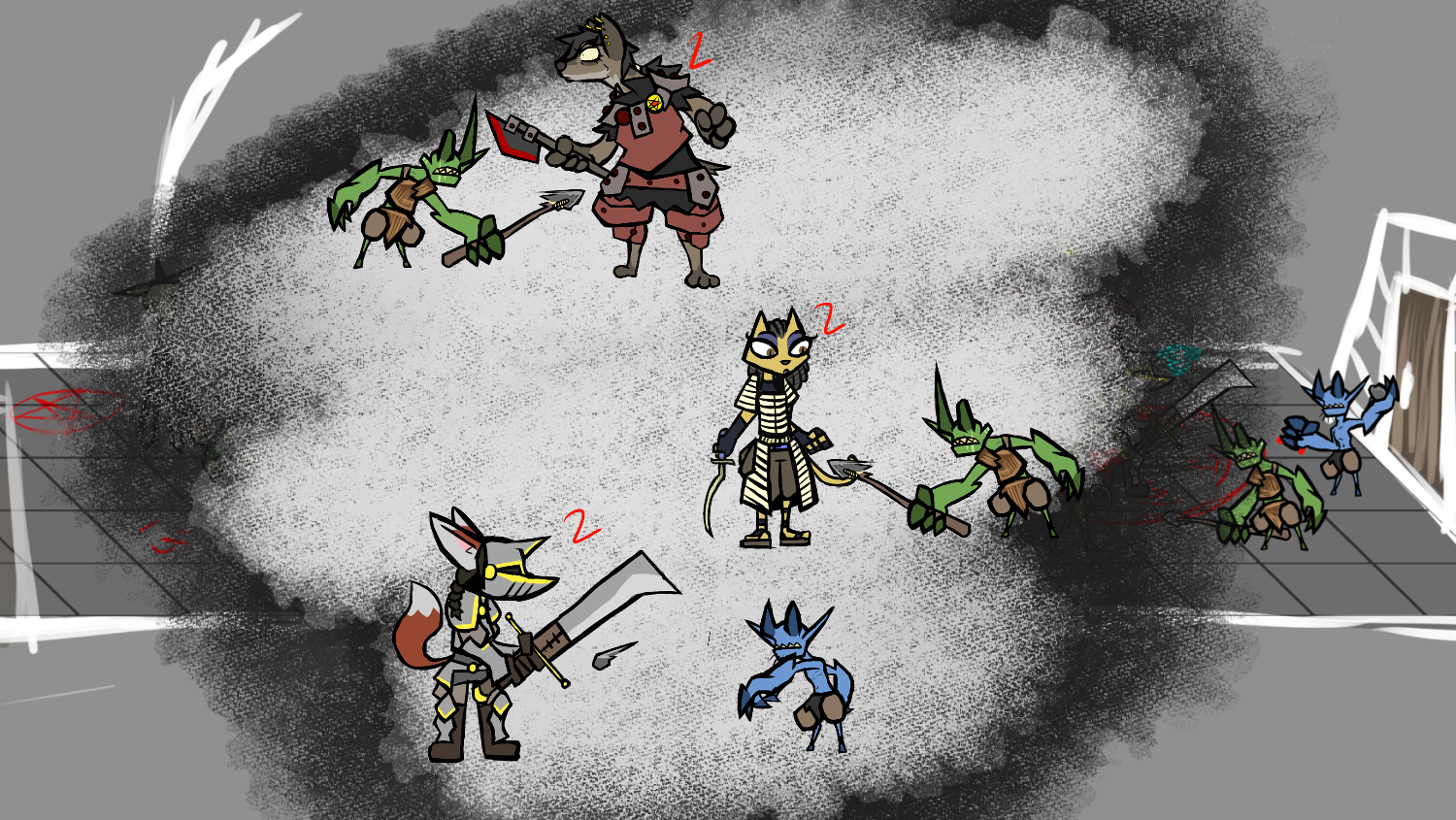 Rhea grabs Harpe by the waist and pulls her along as she goes to inspect the portcullis. it appears to be made of a thick cast iron. she reasons that forcing it open would be unreasonably difficult and time consuming. she doesnt see a mechanism to unlatch the gate, either. it must be elsewhere. on the other end of the portcullis is a short hallway and a small wooden door. is this an alternate path? or maybe a treasure room! her Gnollish greed allows her mind to wander. she hopes to find some strong booze, or something shiny and golden to bring back to her clan.