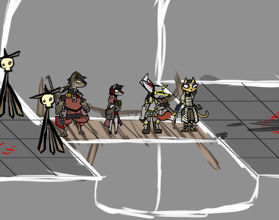 Aisha and Vashti study the area. Vashti, a seasoned explorer, recognizes the skull totems. they are made of foam plastic, actually. they poke the totem a couple times with their saparra, and it wobbles pathetically.
