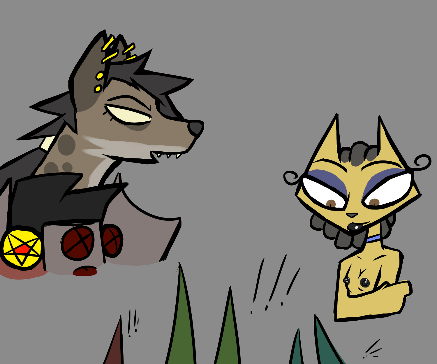 "we smack them around, dipshit." Rhea snorts, she flicks Harpe's nose playfully as she says this, and Harpe whines in aggravation.