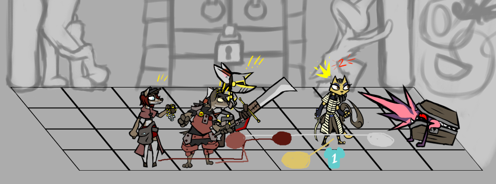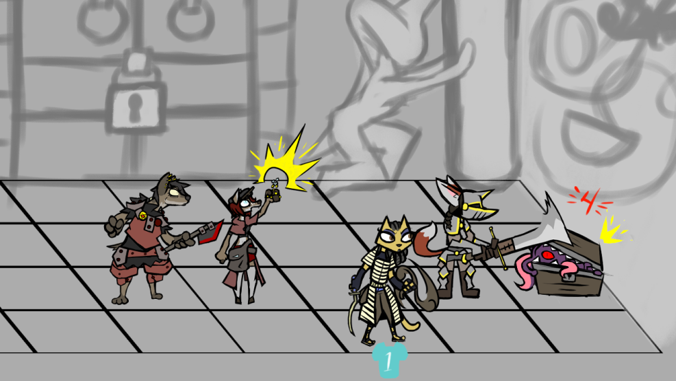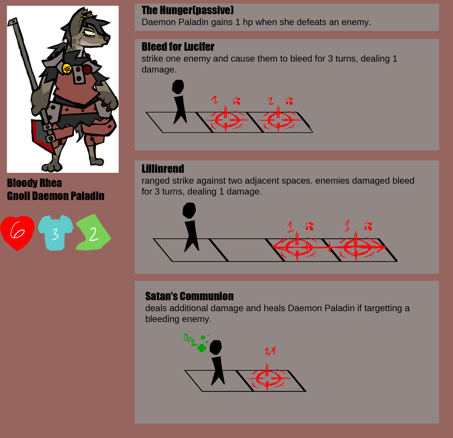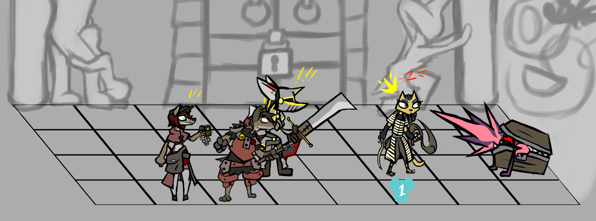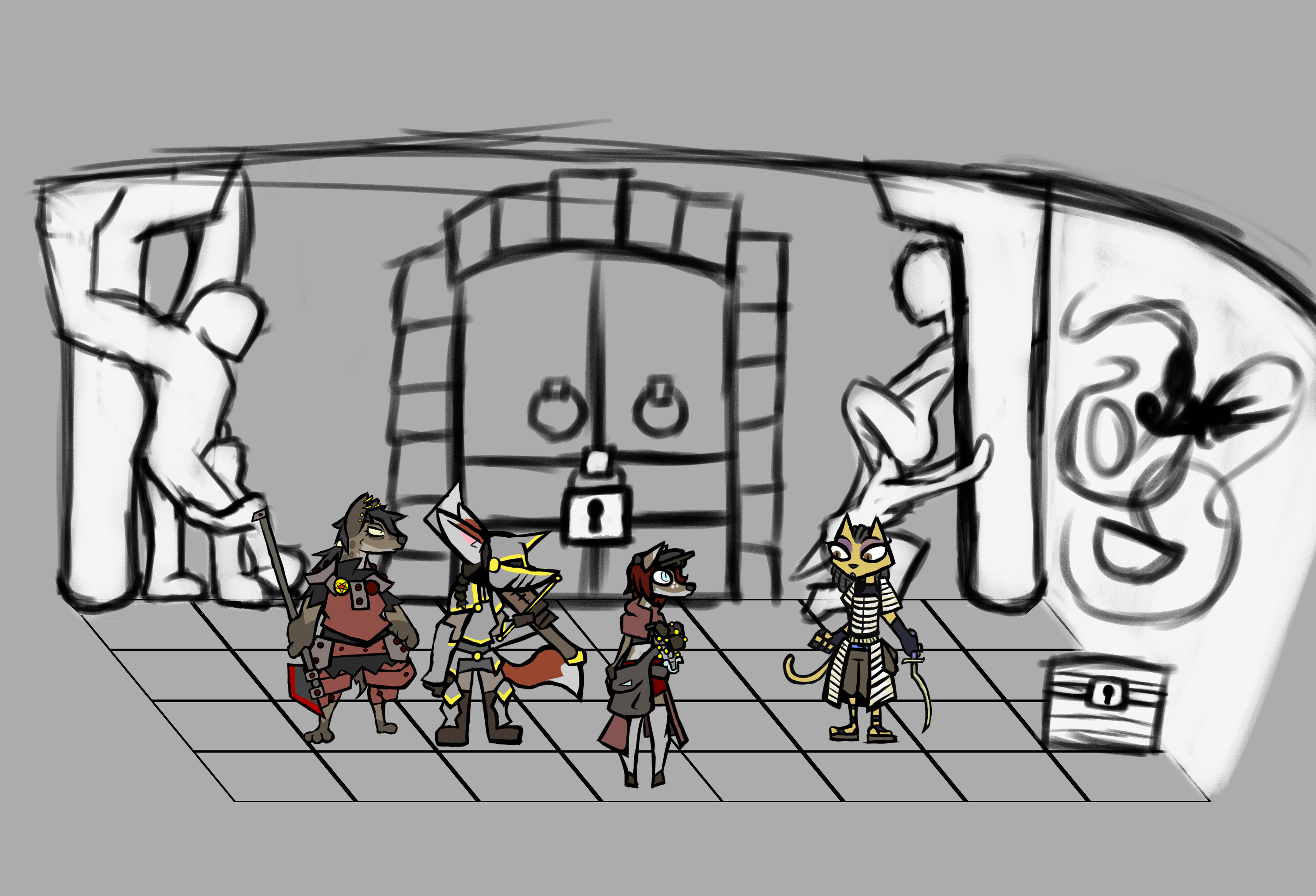 Rhea grabs Harpe by the waist and pulls her along as she goes to inspect the portcullis. it appears to be made of a thick cast iron. she reasons that forcing it open would be unreasonably difficult and time consuming. she doesnt see a mechanism to unlatch the gate, either. it must be elsewhere. on the other end of the portcullis is a short hallway and a small wooden door. is this an alternate path? or maybe a treasure room! her Gnollish greed allows her mind to wander. she hopes to find some strong booze, or something shiny and golden to bring back to her clan.
