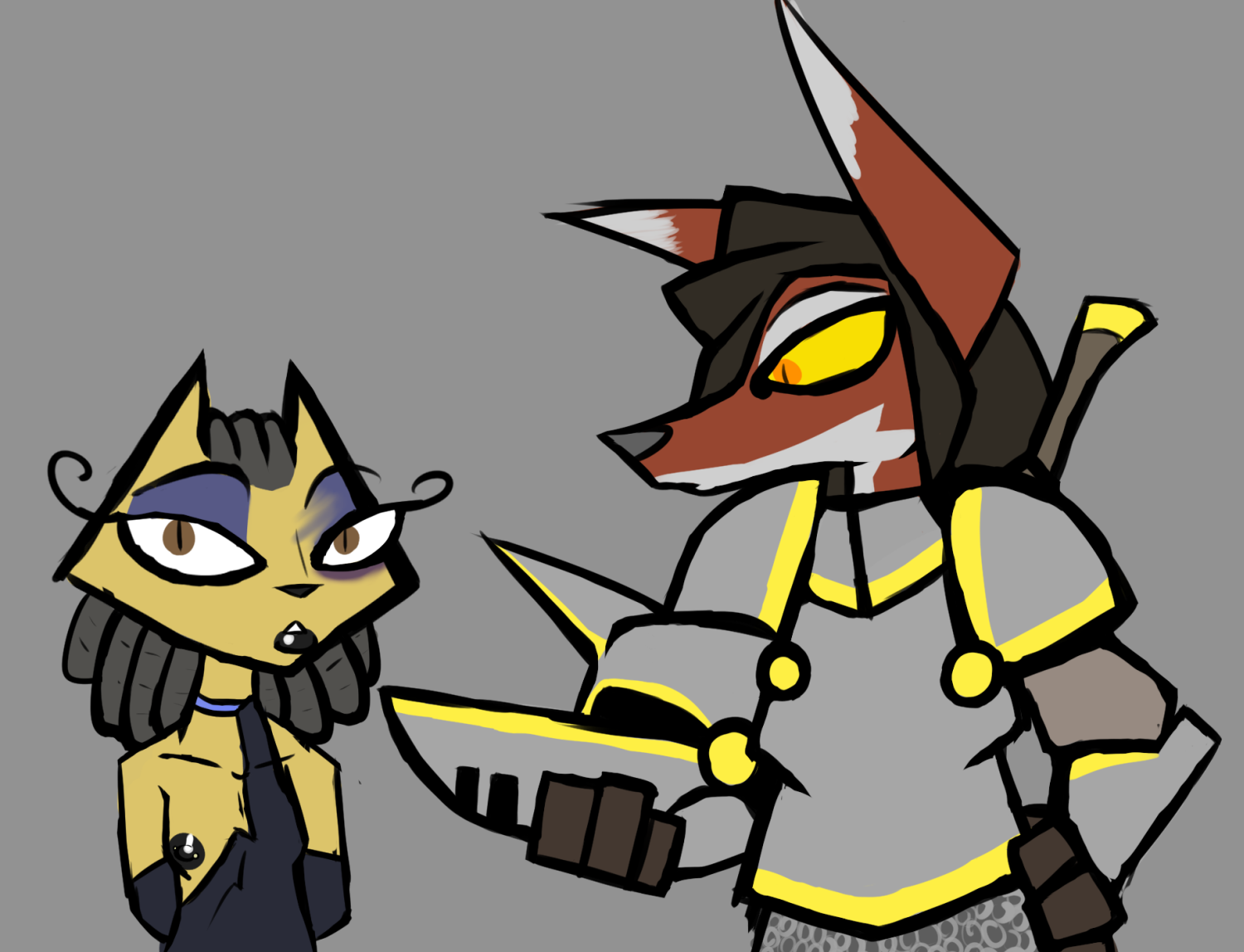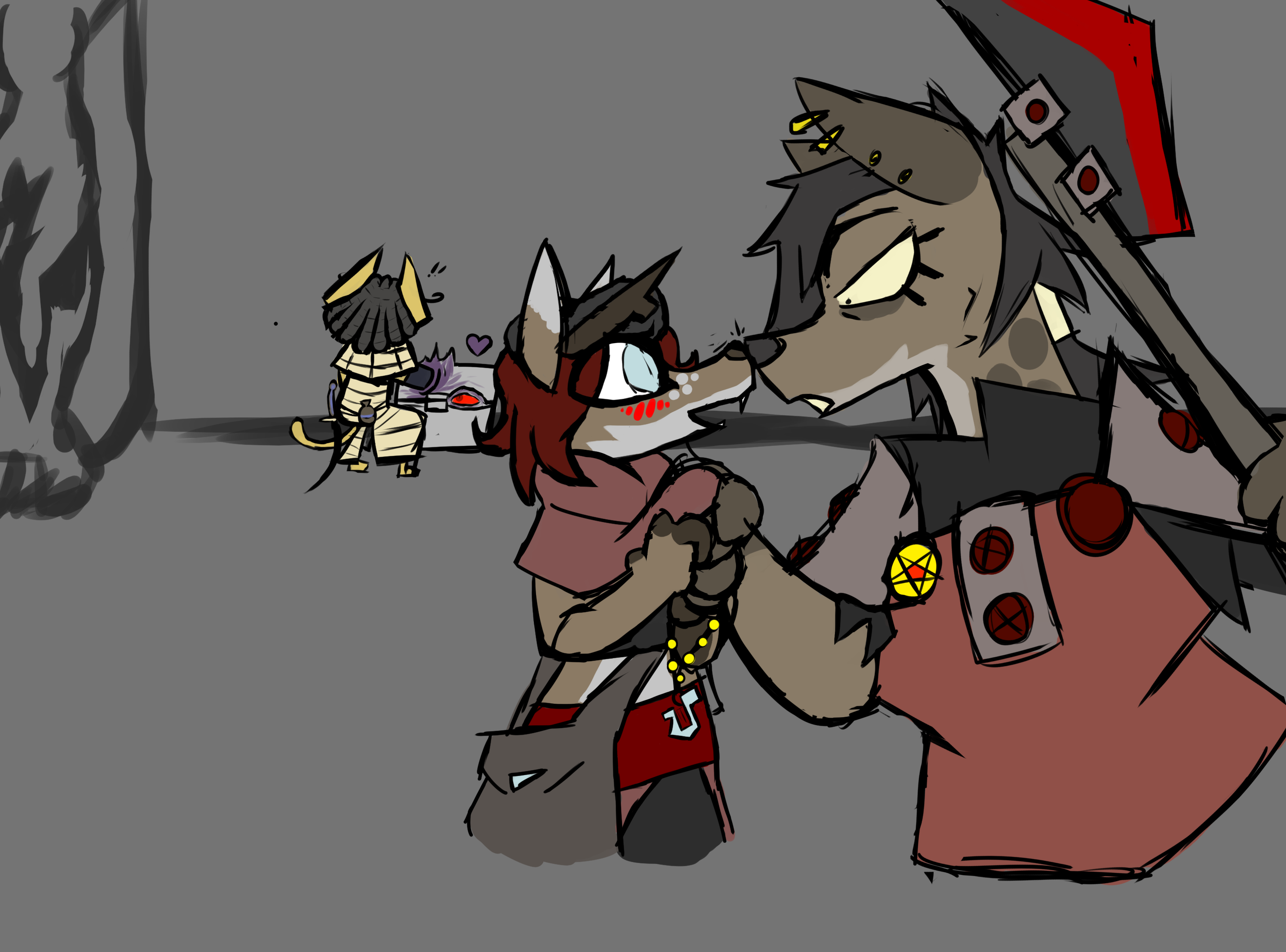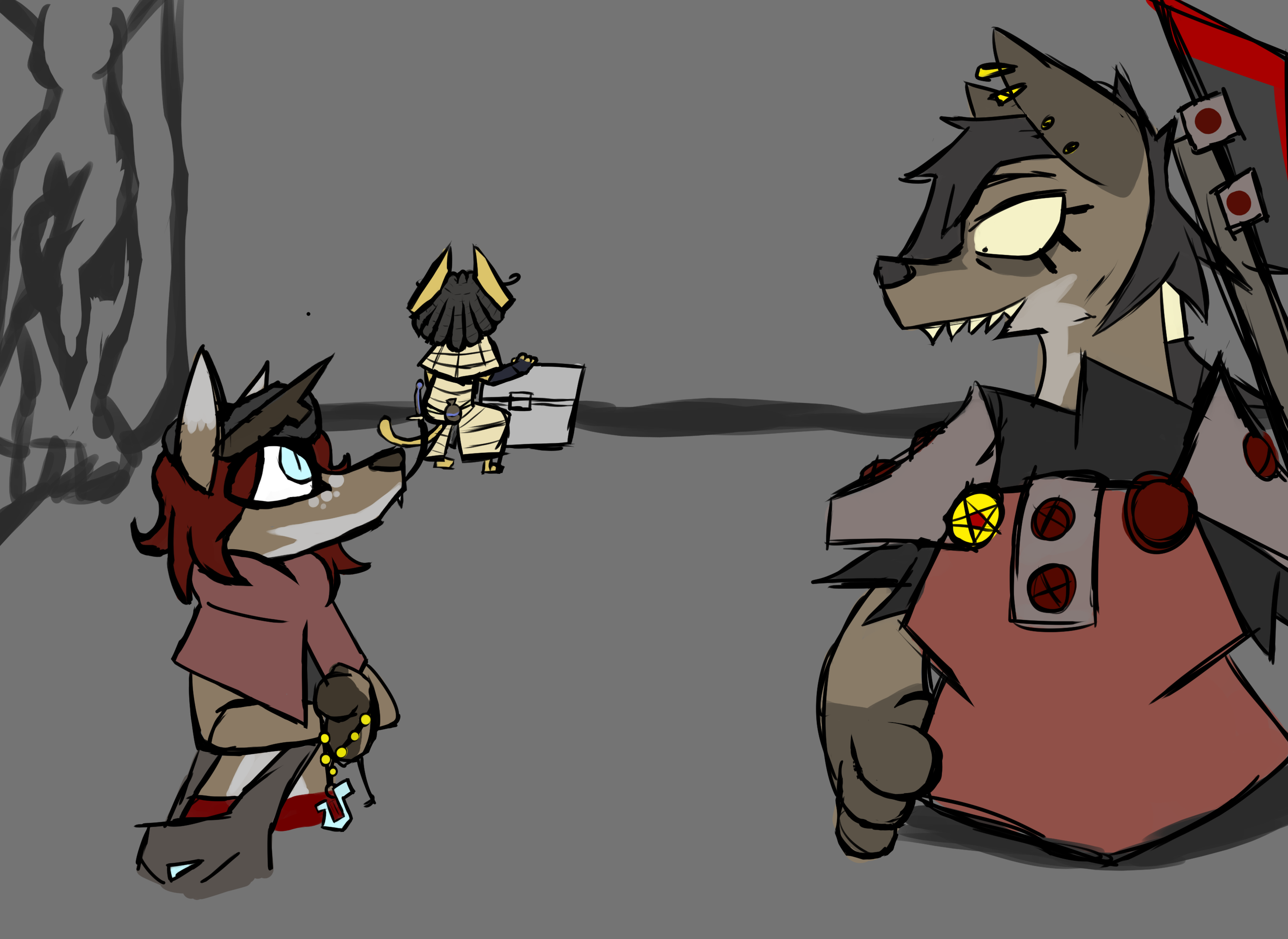"oi, Knightess Gnoll!" Aisha calls back, "any idea what made these marks?"