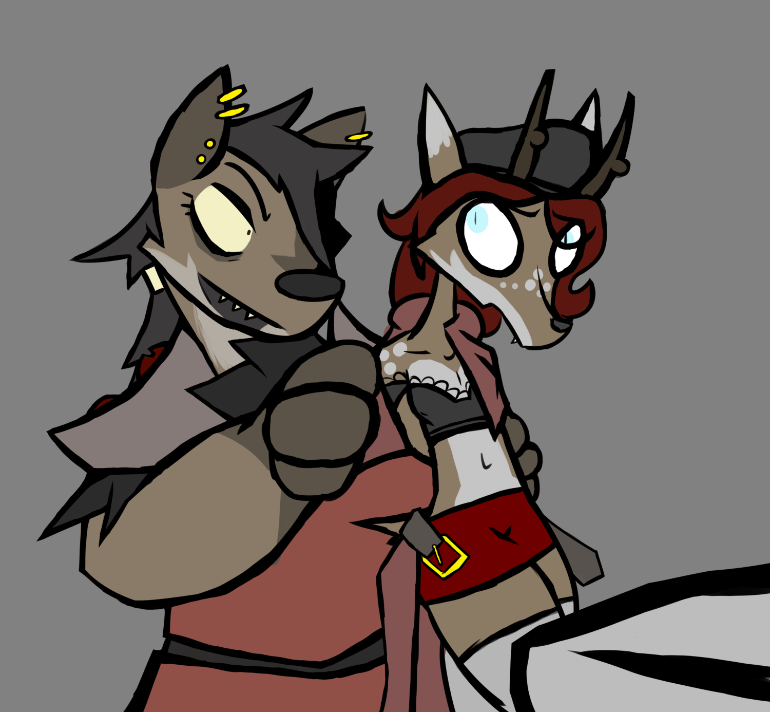 "we smack them around, dipshit." Rhea snorts, she flicks Harpe's nose playfully as she says this, and Harpe whines in aggravation.