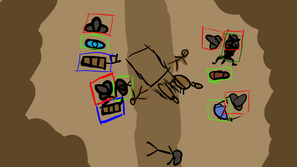 -Mercenary (Spear) wants to sit this one out, still weary from his near death experience after being shot. The other two mercenaries are able to arm themselves with a bow and a crossbow.