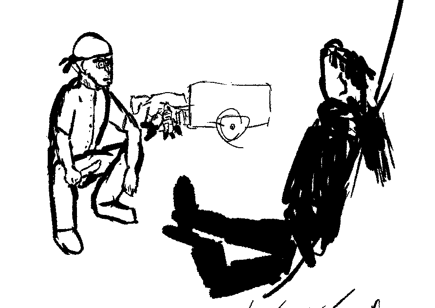 Jonas has every intention of getting quality talk out of this bandit, if he's not salty enough to have information worth torturing out of him... 15. With his disadvantage in reaction rolls from others, his second roll is a natural 1.